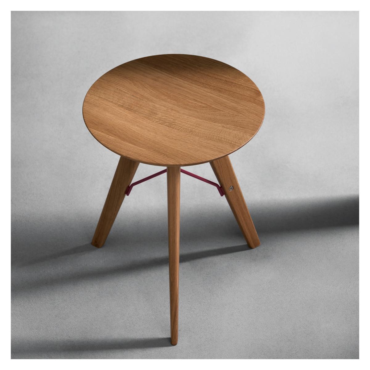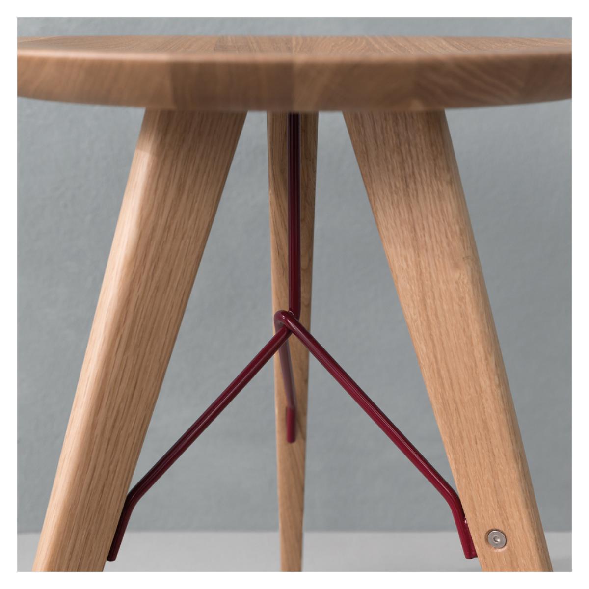 Designed in 2016 by Frank Rettenbacher, the Ivo Stool is completed with a beautifully grained solid oak or walnut body and crafted to exacting standards by Zanotta. Accented with a reinforcing tie-rod in painted stainless steel, the Ivo Stool presents an elegant and simple seating solution that is perfect for any living space or work area. Manufactured by Italian leaders in industrial design, Zanotta, the solid natural oak Ivo Stool would make a dynamic and practical addition to any living space.