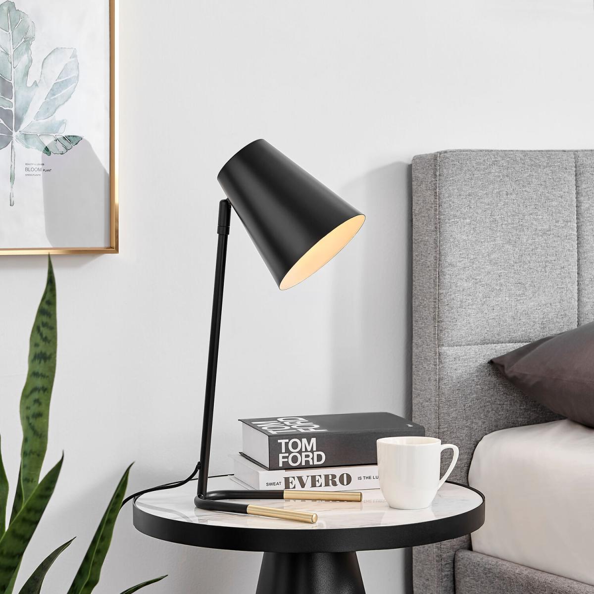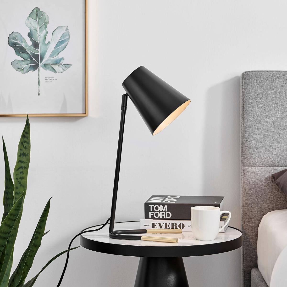 Our Ivo table lamp is sleek and modern and will look great on any table, desk or console. The black and gold colour combination is both glam and Industrial and will look equally great against wooden surfaces or contrasting lighter surfaces. Gold accents to the neck and the unique 2-pronged foot. Stands 49cm tall, with an adjustable head that you can tilt upwards or downwards to angle your light. Also featuring a black corded cable and rocker switch. Requires one 40W E27 bulb, which is included. We also offer the Ivo desk lamp in a white and silver colour combination, so be sure to check out the Ivo range!