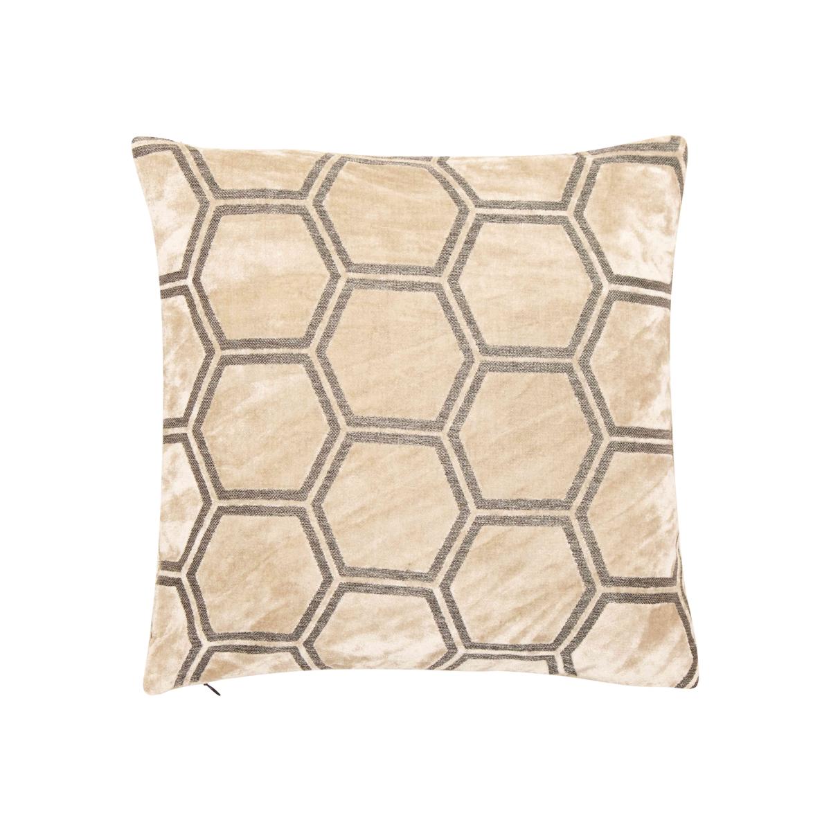 We love a bold-patterned cushion like our Ivor cushion. With its cut velvet pattern of hexagons, it’s striking and so soft to the touch. 100% feather filling. Why you'll love it Velvet feather-filled cushion with a contemporary geometric design. Cut velvet technique creates a pattern of interlocking hexagons. Available in a range of sophisticated modern colours. 100% feather filling. This cushion is part of the Furniture Village home accessories collection. What you need to know 60% polyester, 40% viscose. 100% feather filling. For indoor use only. To maintain cushion plumpness, remove cover and plump cushion interior regularly. Dry clean only. Dimensions Height: 43 cm (17 in). Width: 43 cm (17 in).