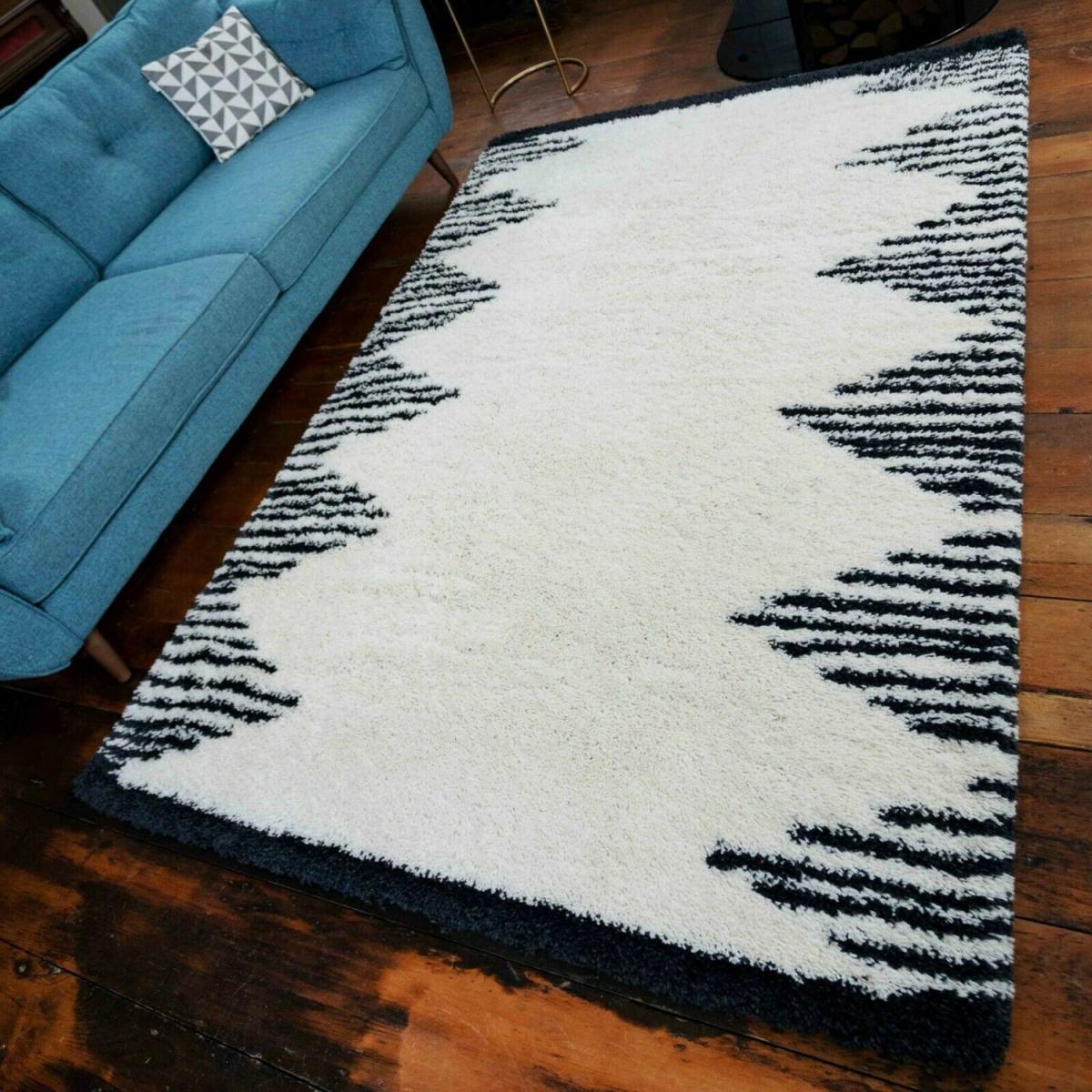 I really like this Ivory and Charcoal Geometric Shaggy Rug for adding texture and visual interest to a variety of interiors. Its neutral colour palette makes it versatile enough to work in both contemporary and transitional spaces, complementing other muted tones or adding contrast to bolder palettes. The shaggy texture brings a cosy and inviting feel underfoot, ideal for living rooms or bedrooms. For styling, consider pairing it with minimalist furniture to let the pattern stand out, or layer with throw cushions and soft furnishings in similar tones to create a cohesive look. Its size and weight make it practical for defining seating areas or anchoring a room, while the pattern helps to add a modern touch without overwhelming the space.