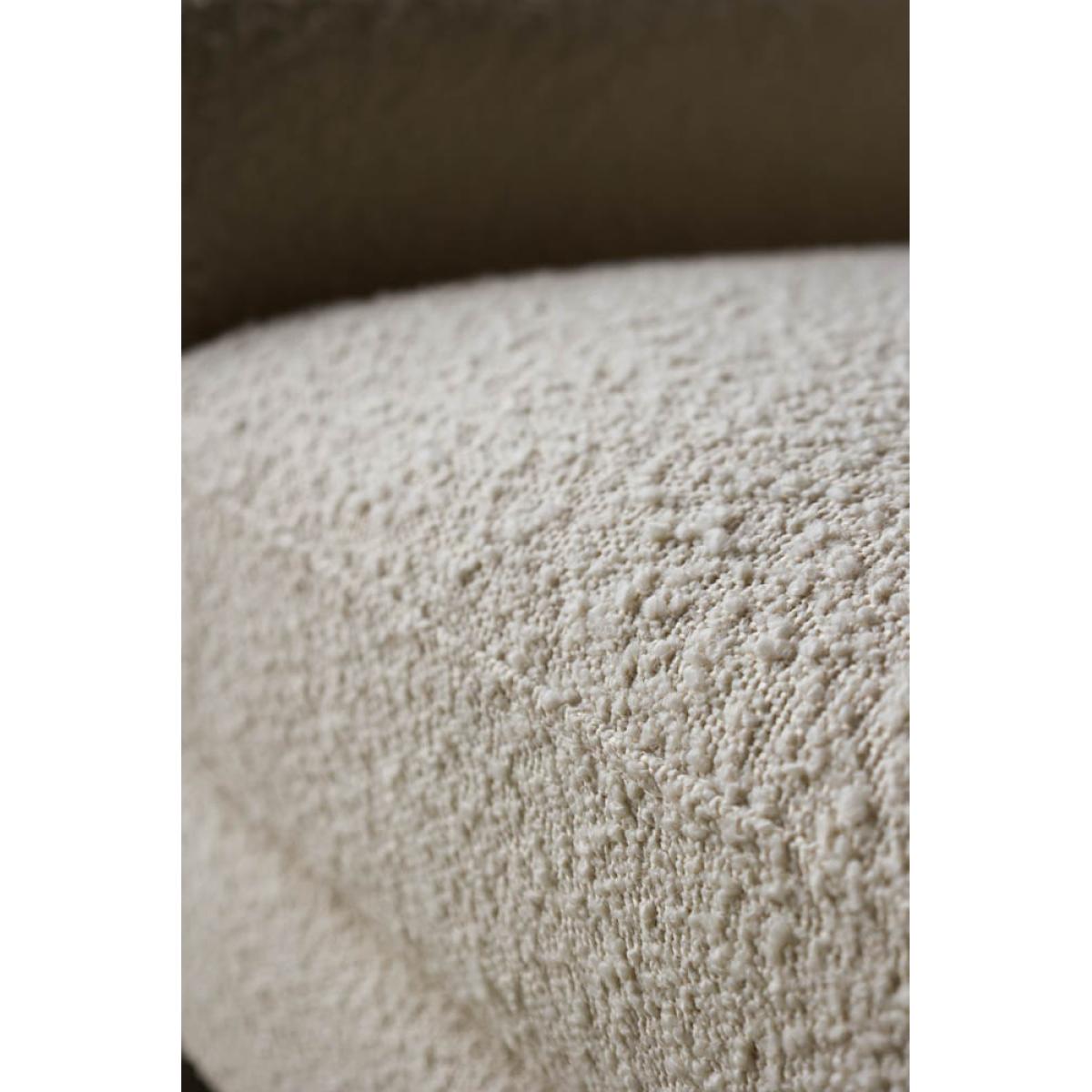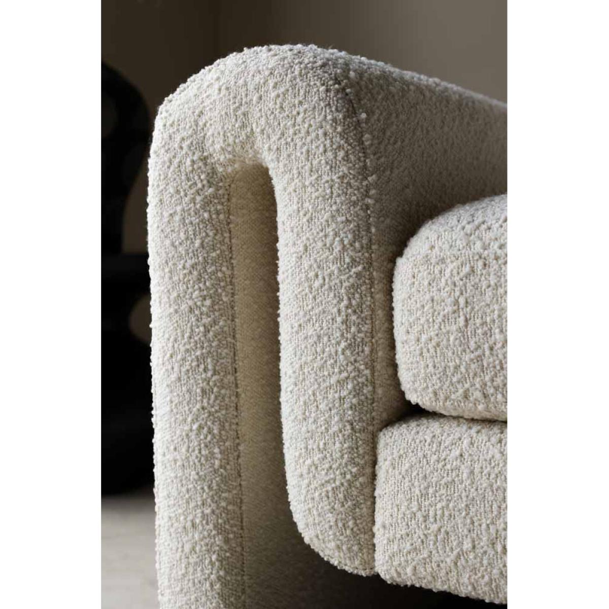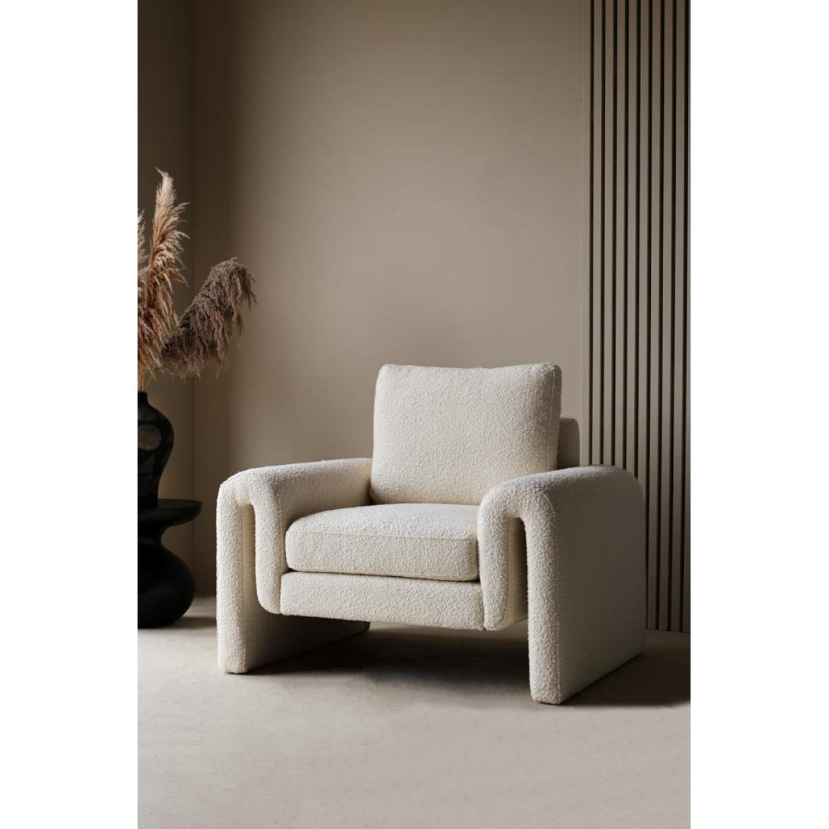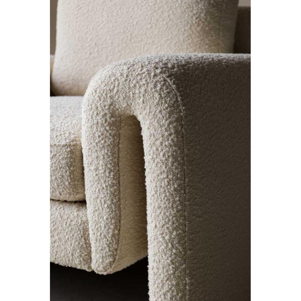 About The Ivory Boucle Fabric Curved Arm ArmchairA statement armchair with a sexy silhouette, the Ivory Boucle Fabric Curved Arm Armchair is a modern masterpiece. Measuring H69cm x W100cm x D84cm, the beautiful ivory boucle finish and unique curved shape ensures this comfy armchair will command attention. Why We Think You’ll Love The Boucle ArmchairA statement modern armchair has the power to transform your living space and this super glam design looks straight out of the pages of Livingetc. The trend for curves has been gaining pace for the last few years and has become a timeless trend that ensures the investment pieces in your home will stand out from the crowd. Embracing arched arms that create the illusion of the seat suspended in the air, this beautiful comfy armchair in chic ivory boucle has a fabulous designer feel perfect for elevating everyday lounging, from snuggling down to watch Netflix on the weekend to relaxing with a glass of wine on a Friday night. How To Style The Curved Cream ArmchairThe Ivory Boucle Fabric Curved Arm Armchair is a hero piece for the home and will look incredible wherever you choose to style it, from the bedroom to open plan kitchen/living spaces. Creating a cosy feel with ivory boucle, we love pairing this comfy armchair with warming, earthy neutrals on the walls and contrasting black furniture for the ultimate relaxed monochrome look!