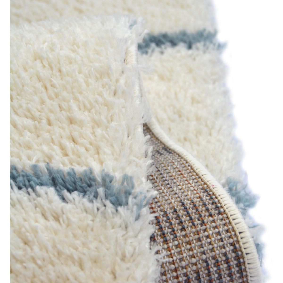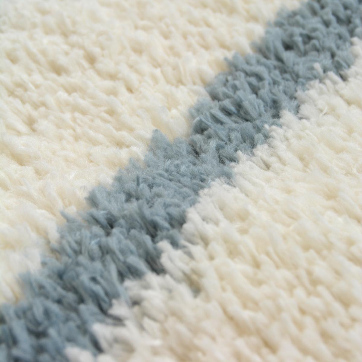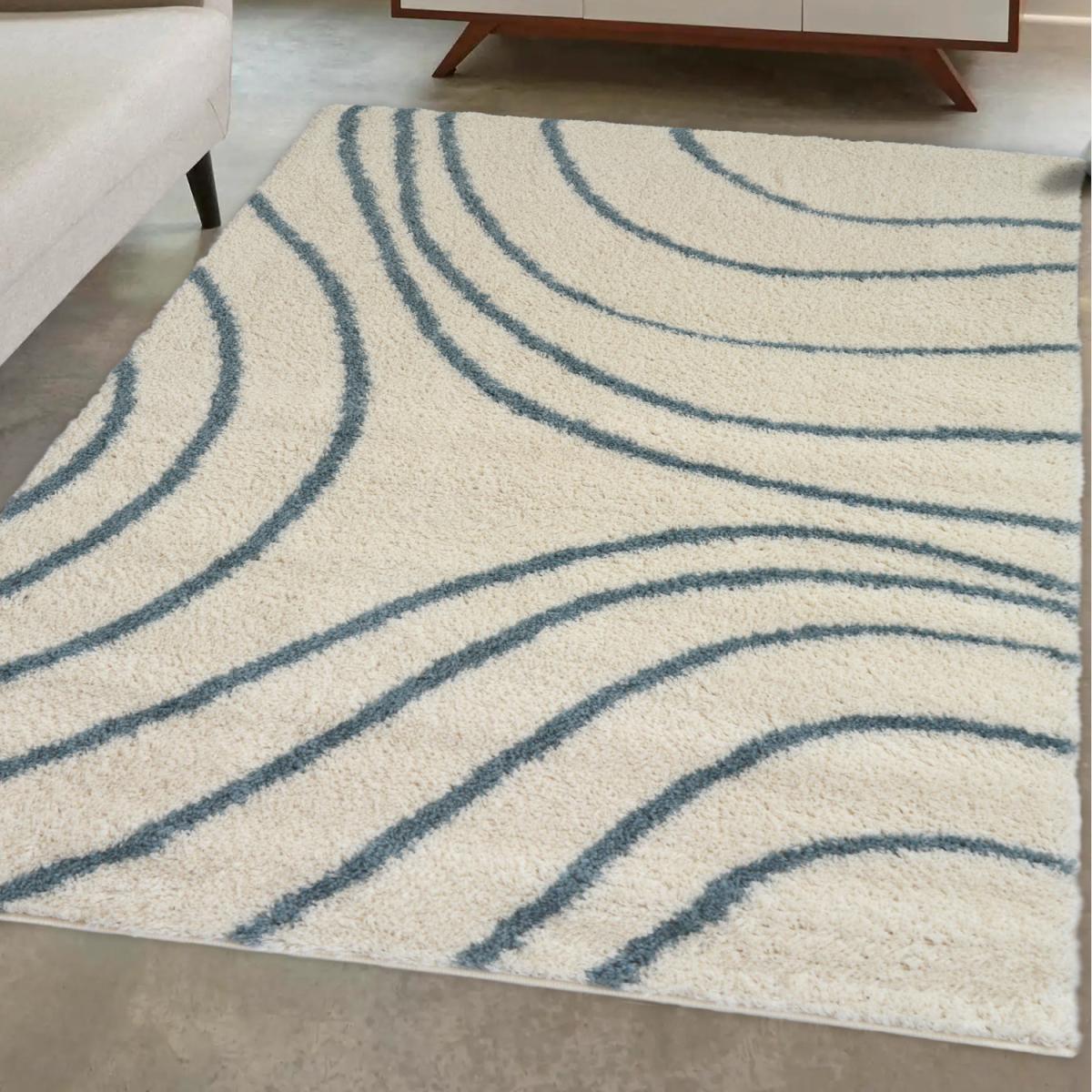 Ivory Modern Geometric Deep Shaggy Living Room Rug - Brae - Blue