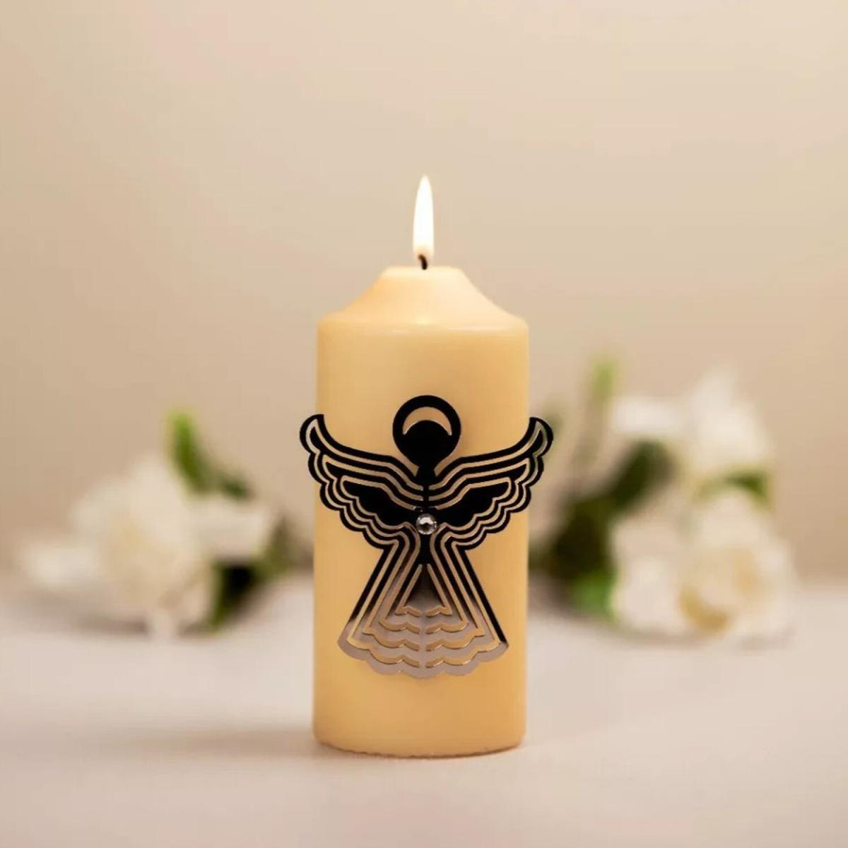 Ivory Pillar candle with Candle Pin - Ivory,Silver / Angel