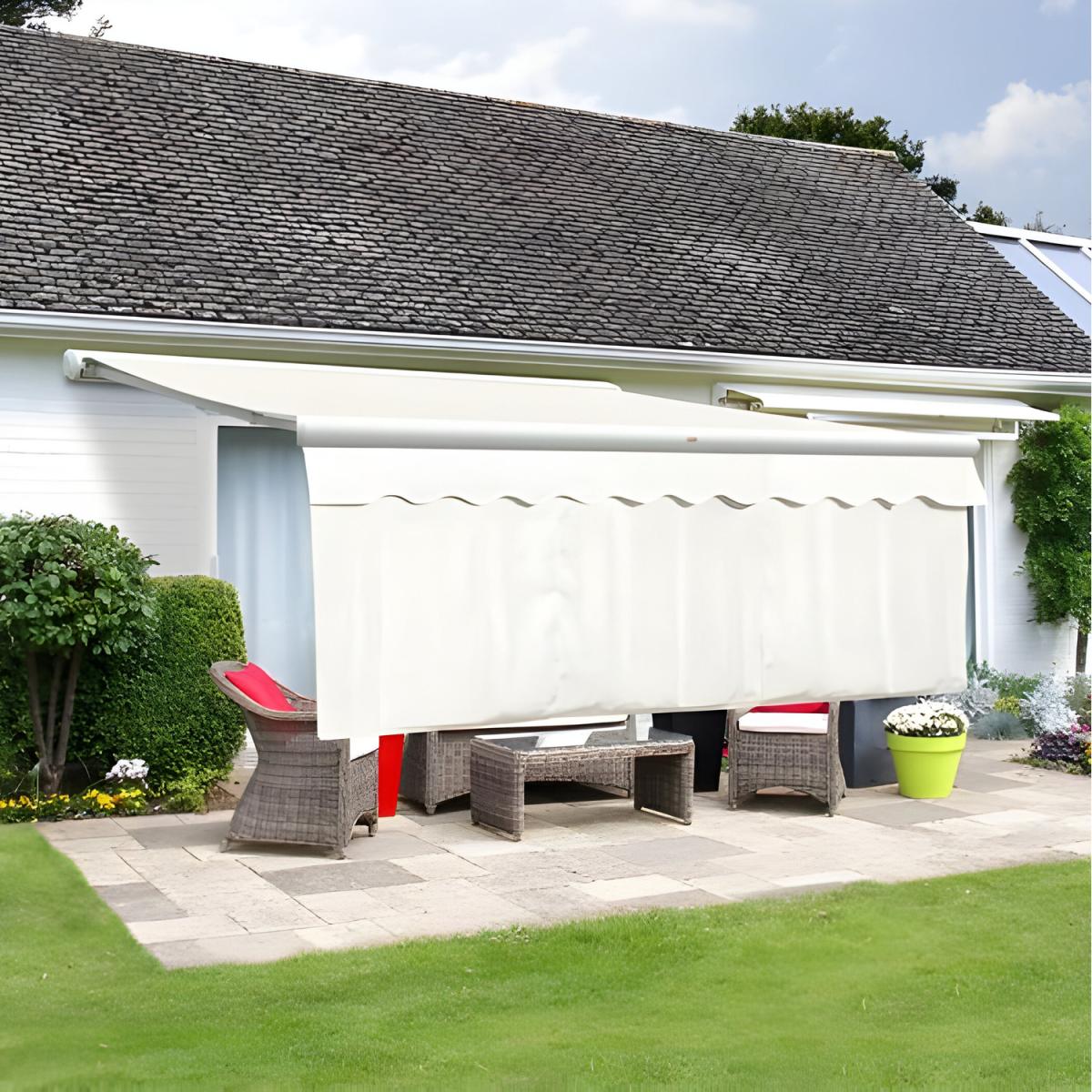 A clever and stylish solution for creating shade in your garden in the summer without having to purchase additional stands or attachments simply slide it into your existing awning for a practical and sleek way of maintaining a shady or private spot on your patio. Perfect for helping to avoid the glare of the sun as it sets while still enjoying the remaining light. This ingenious system combines a Velcro fastening and traditional valance to allow you to simply roll it up when you want to let the sun in, keeping your awning looking neat and tidy. This easy to install valance can either be supplied new with your awning or fitted at a later date. Simply slide the original valance out of place and replace it with the new dropdown. The dropdown valance is split into sections which can be dropped down independently of each other to create the perfect amount of shade. This also makes rolling and unrolling the dropdown quick and easy without having to struggle with bulky material.