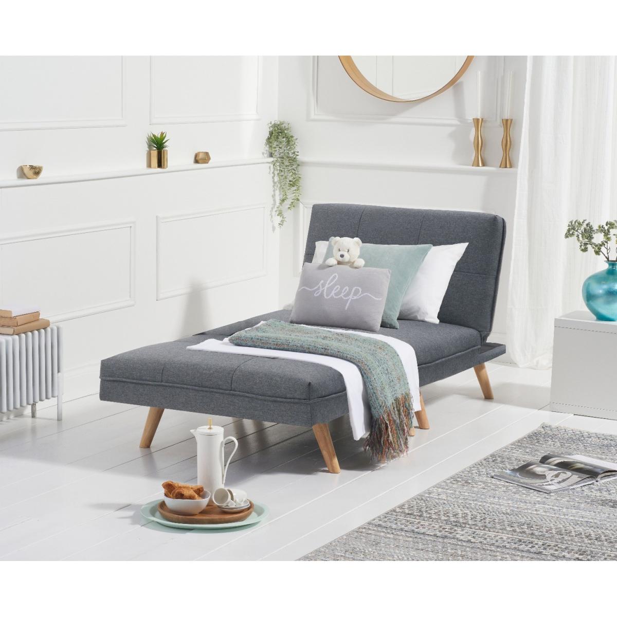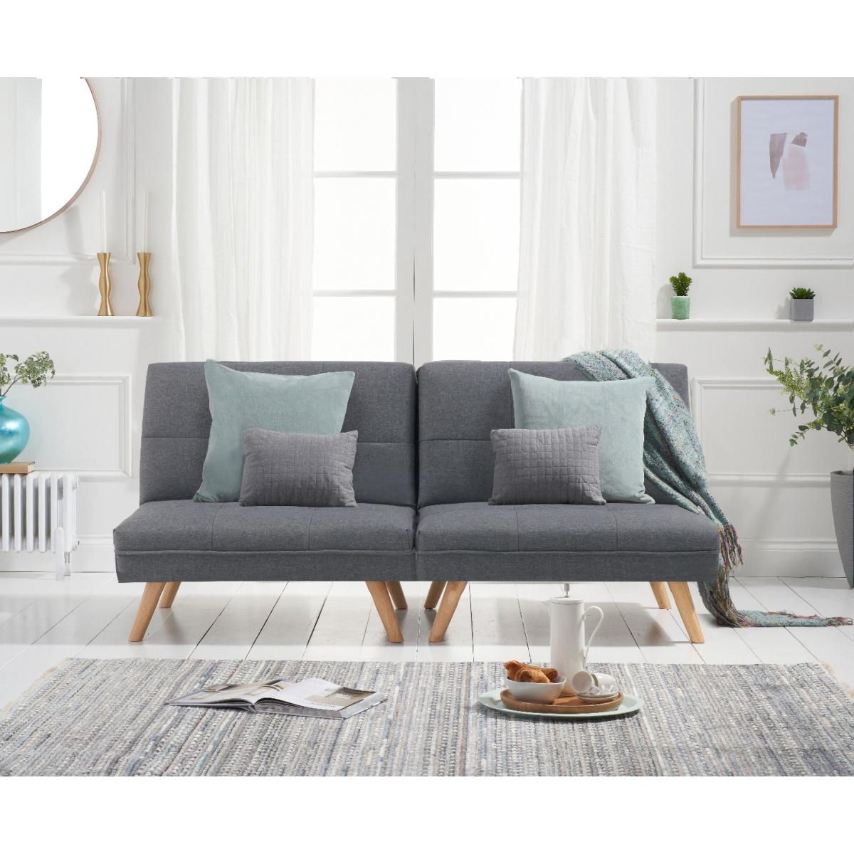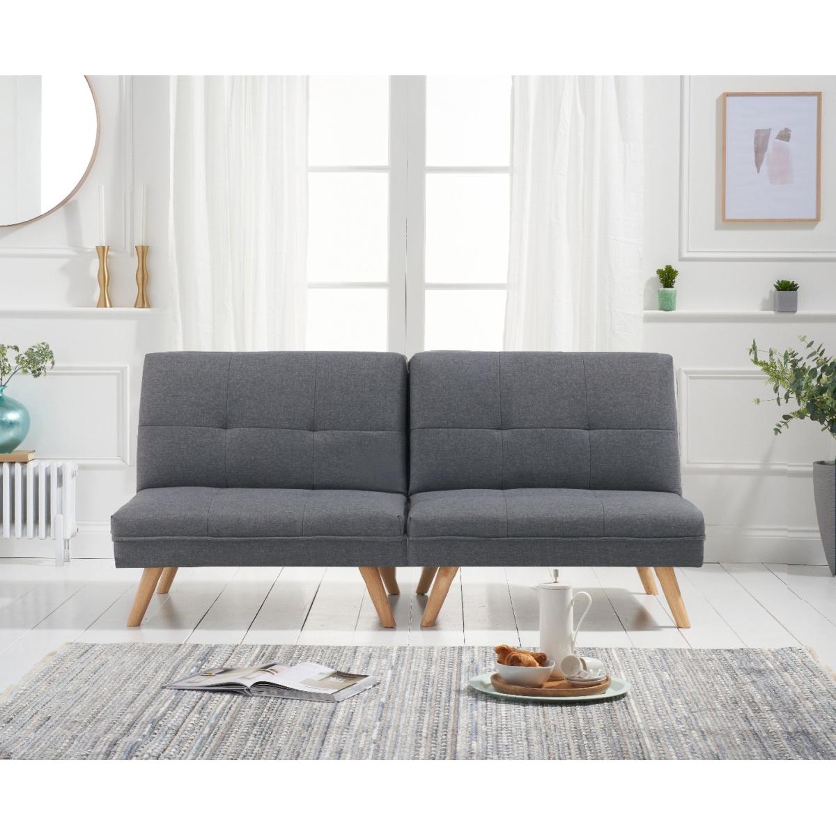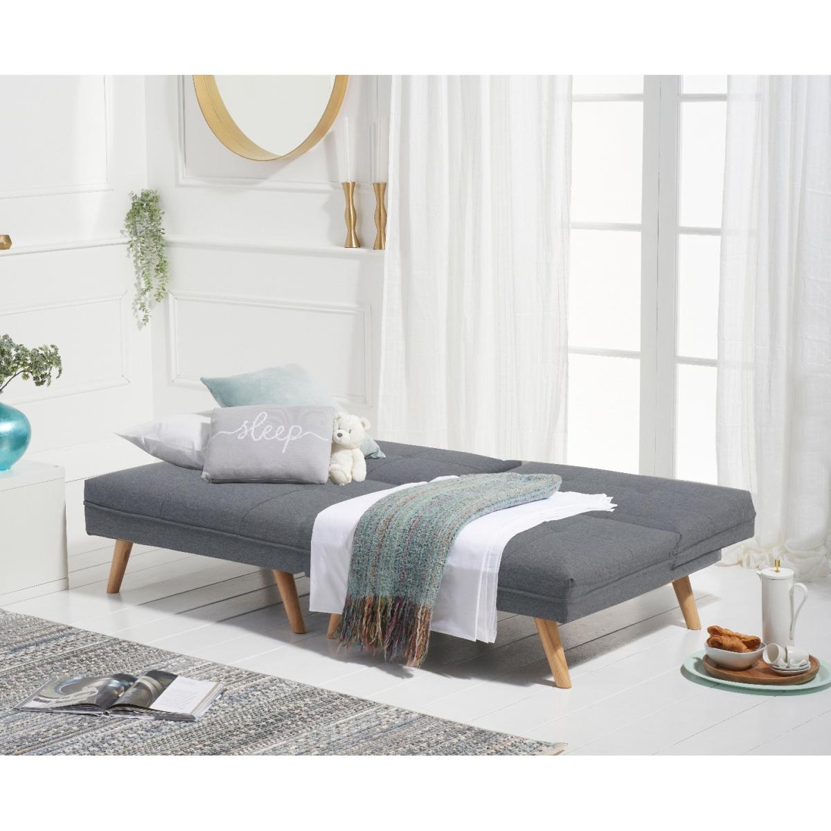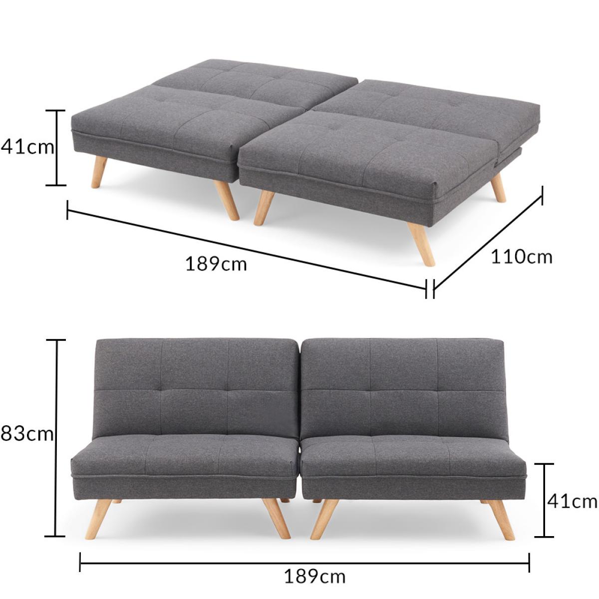 Sleek, stylish and supremely versatile. The eye-catching Ivy Sofa Bed gives the impression of being two chairs whilst, in reality, functioning as a stunning sofa and a double bed option for guests. Clean contemporary lines combine with comfy tufted seats to look striking in modern settings. Immaculately tailored tufted seats in plush velvet or crisp linen. Slightly splayed Oak legs. Versatile design means the Ivy folds in a number of different ways. Comfortably seats three or sleeps two. Choose from blue, grey or green soft velvet or modern grey linen. Just assemble the legs and your sofa is ready!