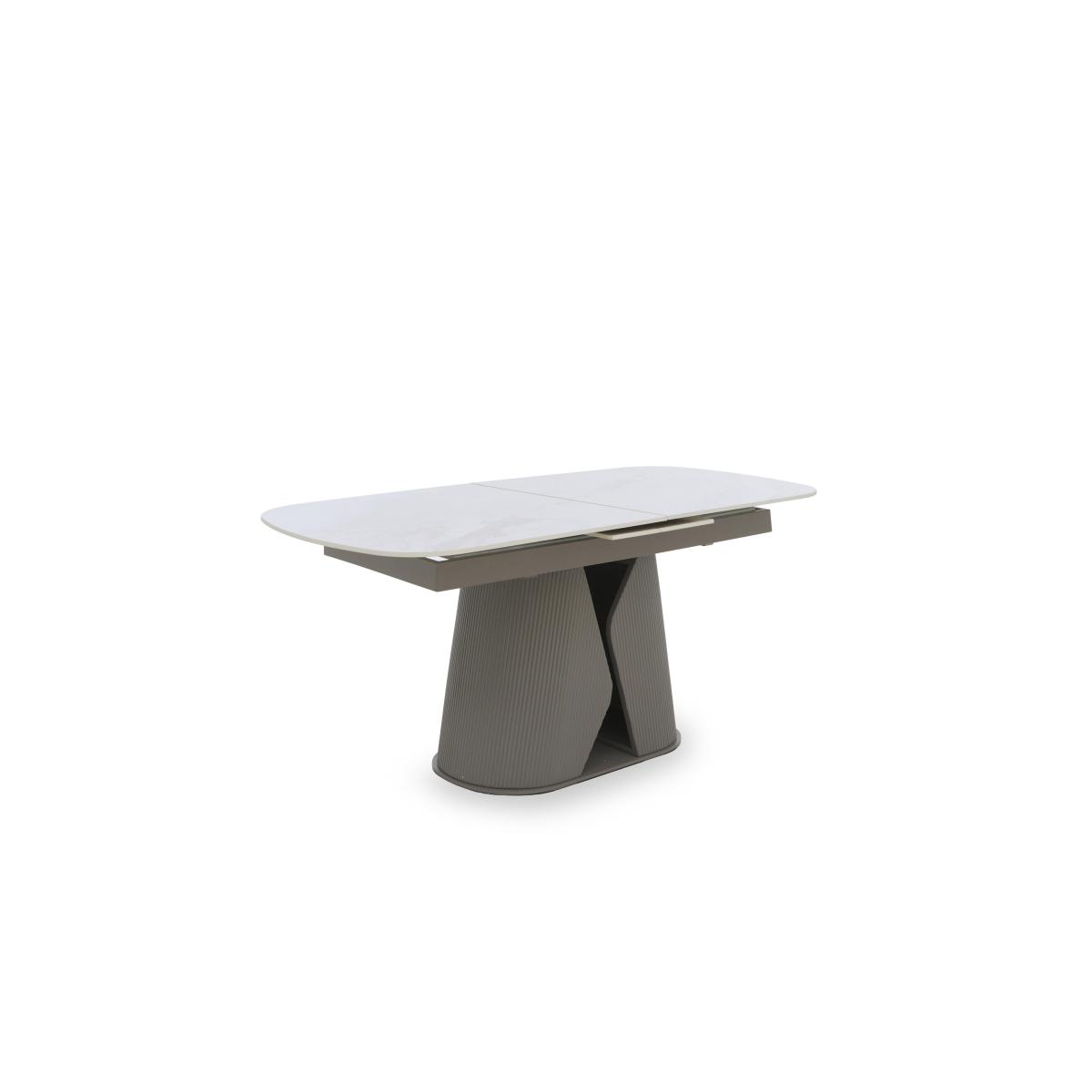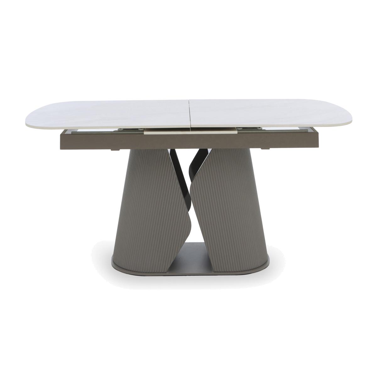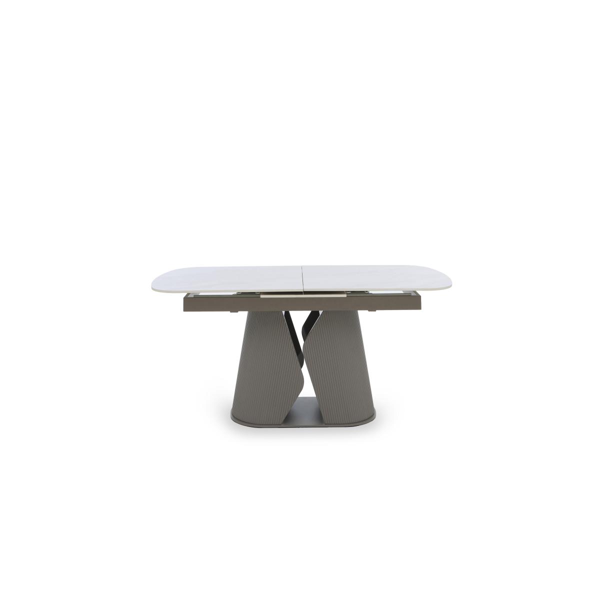 Be a style leader with fabulous furniture for dining rooms and living spaces from our fashion-forward Ivy range. Every piece in the collection brings the wow factor and speaks to your innate sense of interior style, thanks to those deep ceramic surfaces and fabulous fluted frames and table bases. Throughout, you’ll find a high-gloss finish for that extra touch of luxury. Statement details abound, from the dramatic split pedestal bases to the coordinating fluted stitching that adorns the cantilever dining chairs. The Ivy range is exclusively available at Furniture Village. Free your inner interior designer with our striking Ivy range. This extending dining table showcases high-gloss yet hardwearing finishes in its beautiful ceramic top and dramatic fluted base. Why you'll love it Show off your fabulous sense of style with the fashion-forward Ivy range. Top-to-bottom high-gloss look brings home sophisticated luxury. The curved ceramic top of this extending dining table brings the wow factor. Dramatic split pedestal base with an elegant fluted finish and slim metal plinth. Superb quality 11 mm deep ceramic top is very hardwearing. It’s also heatproof, scratch-resistant and chip-resistant. Versatile neutral palette suits modern décor schemes. Clever pop-up mechanism extends this table in seconds. In a choice of sizes, including a compact dining table. The Ivy range is only at Furniture Village. This extending dining table is part of our Ivy range. What you need to know 178 cm dining table seats 8 closed and 10 extended. 130 cm dining table seats 6 closed and 8 extended. We recommend using coasters and placemats at all times. Easy to care for. Simply wipe with a clean, slightly damp cloth. Item code: IVY-TBL2--001