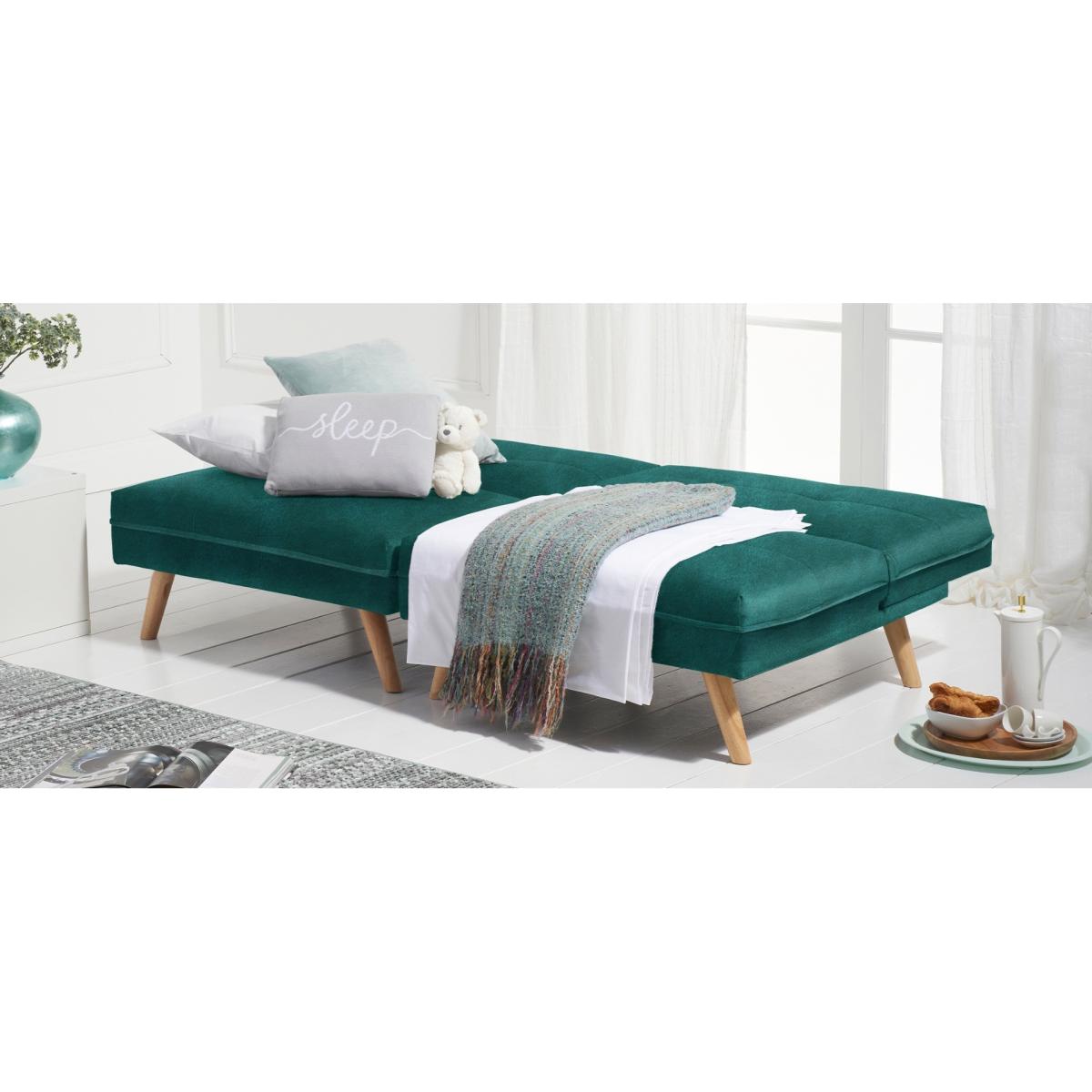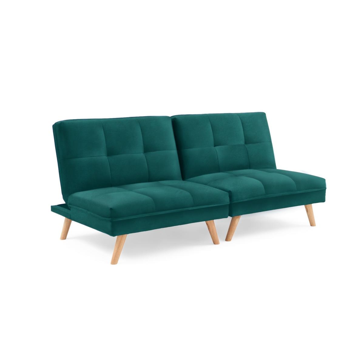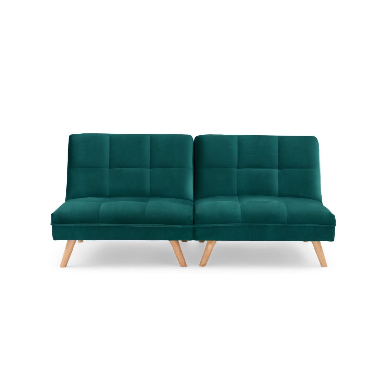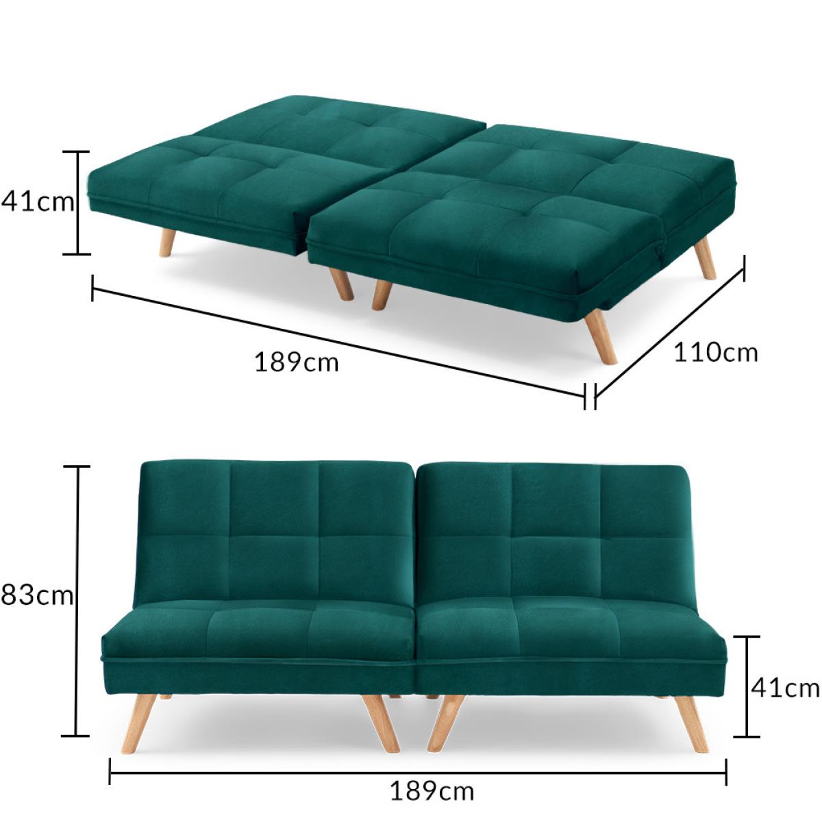 Sleek, stylish and supremely versatile. The eye-catching Ivy Sofa Bed gives the impression of being two chairs whilst, in reality, functioning as a stunning sofa and a double bed option for guests. Clean contemporary lines combine with comfy tufted seats to look striking in modern settings. Immaculately tailored tufted seats in plush velvet or crisp linen. Slightly splayed Oak legs. Versatile design means the Ivy folds in a number of different ways. Comfortably seats three or sleeps two. Choose from blue, grey or green soft velvet or modern grey linen. Just assemble the legs and your sofa is ready!