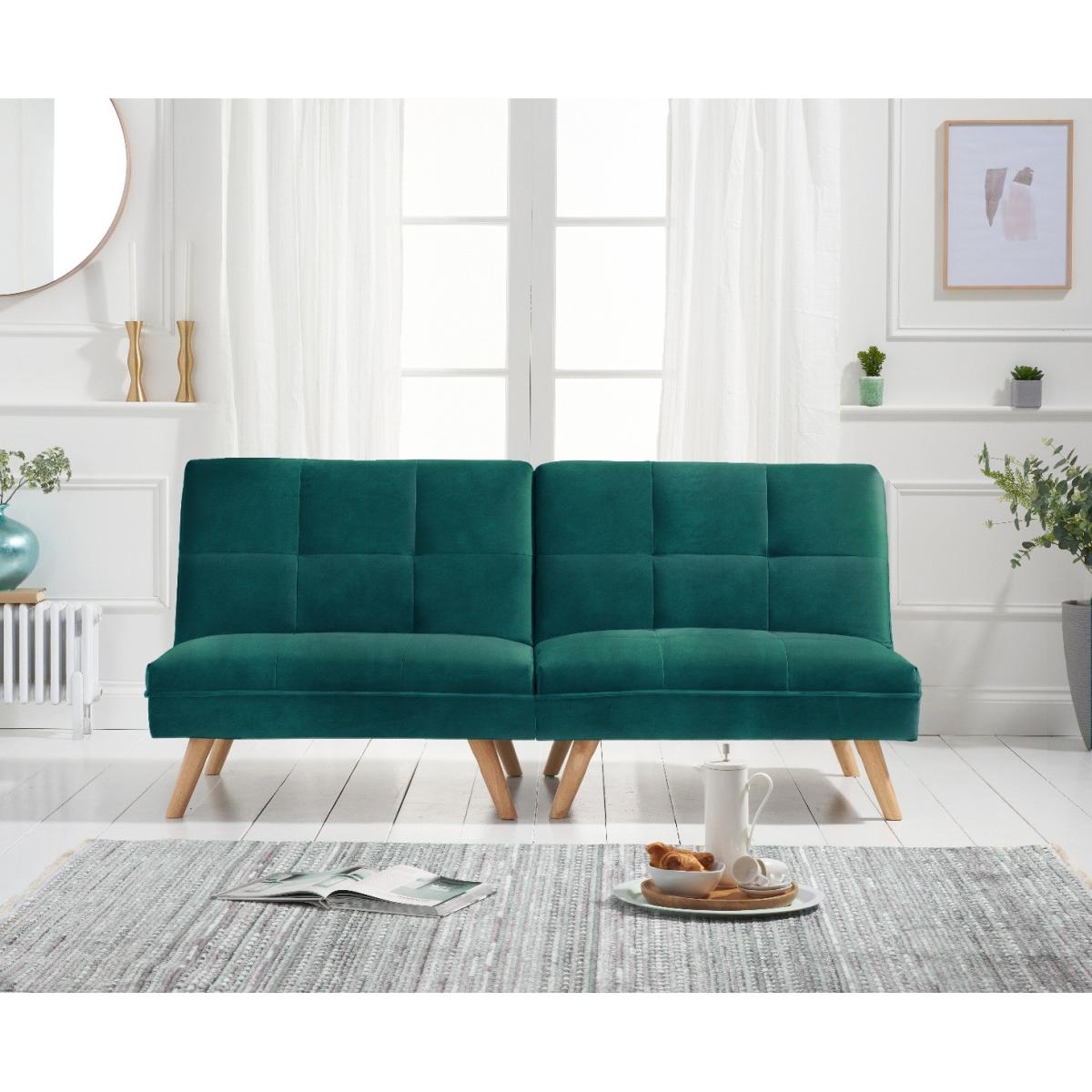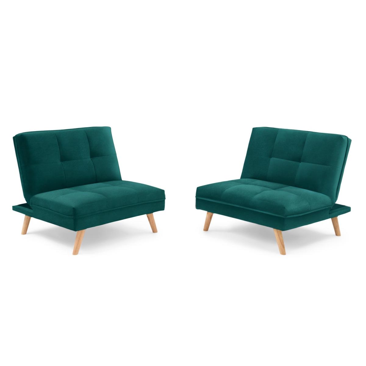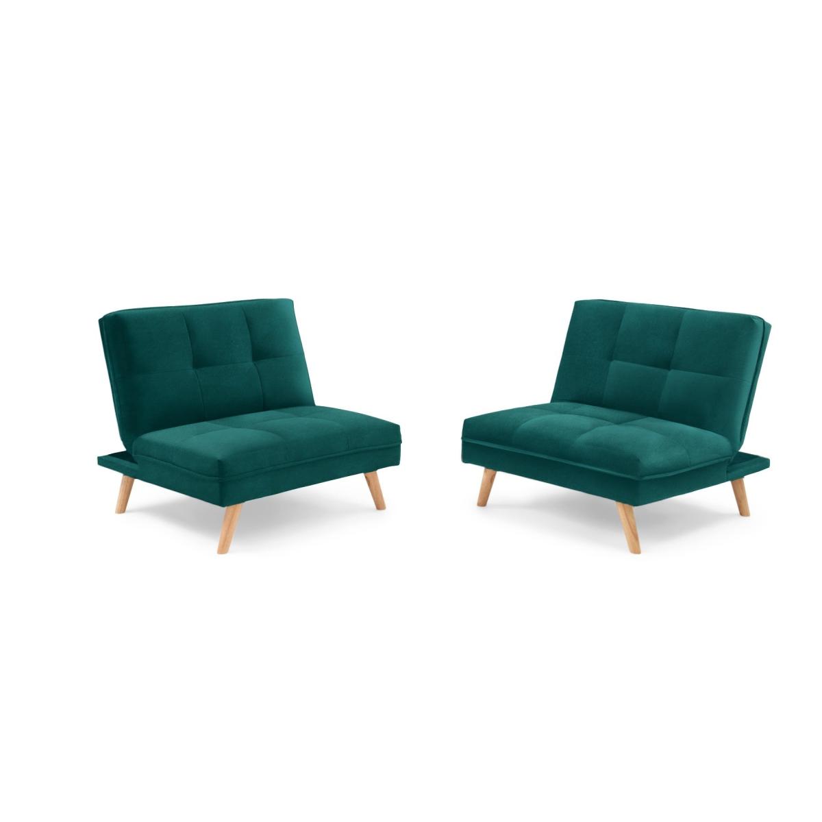 Sleek, stylish and supremely versatile. The eye-catching Ivy Sofa Bed gives the impression of being two chairs whilst, in reality, functioning as a stunning sofa and a double bed option for guests. Clean contemporary lines combine with comfy tufted seats to look striking in modern settings. Immaculately tailored tufted seats in plush velvet or crisp linen. Slightly splayed Oak legs. Versatile design means the Ivy folds in a number of different ways. Comfortably seats three or sleeps two. Choose from blue, grey or green soft velvet or modern grey linen. Just assemble the legs and your sofa is ready!
