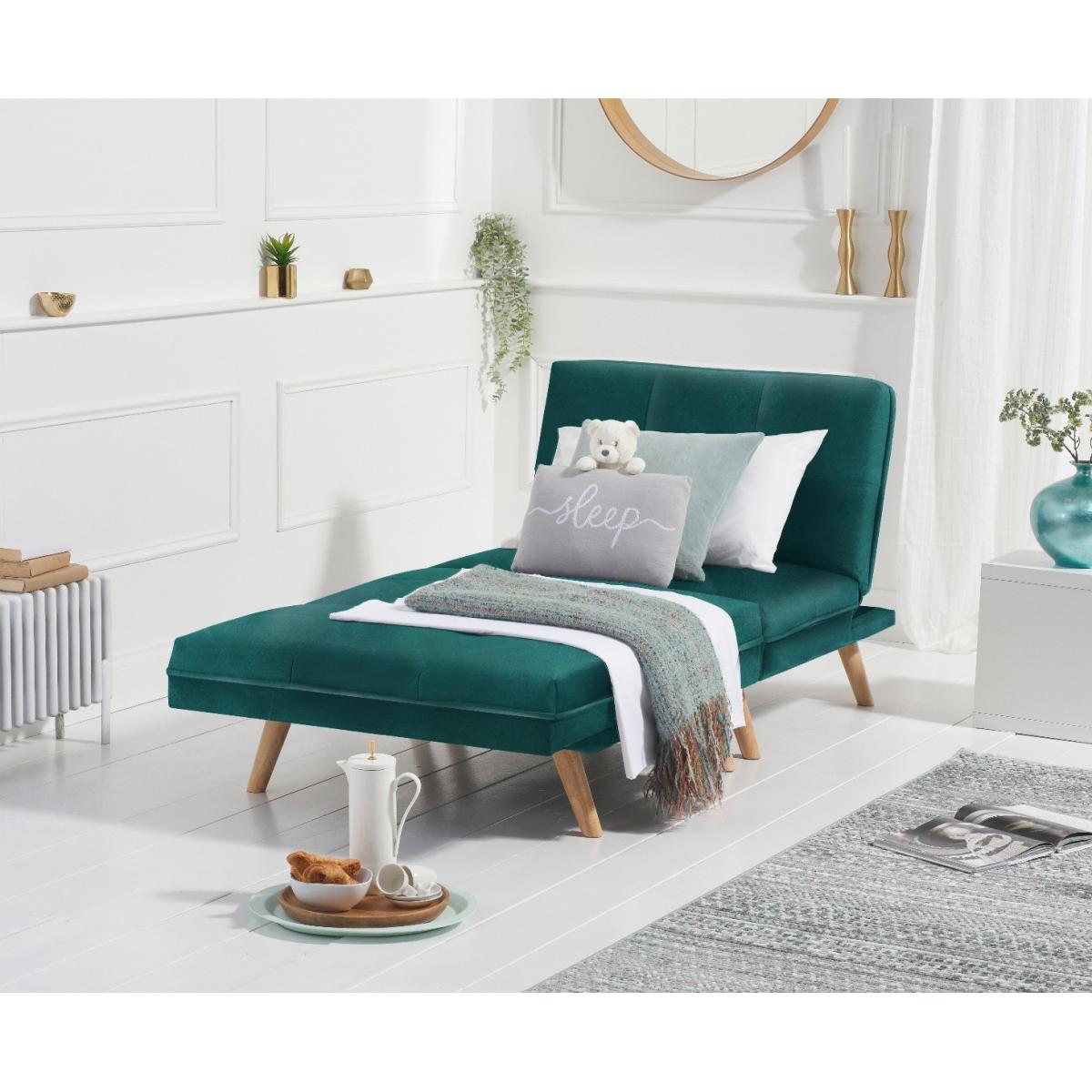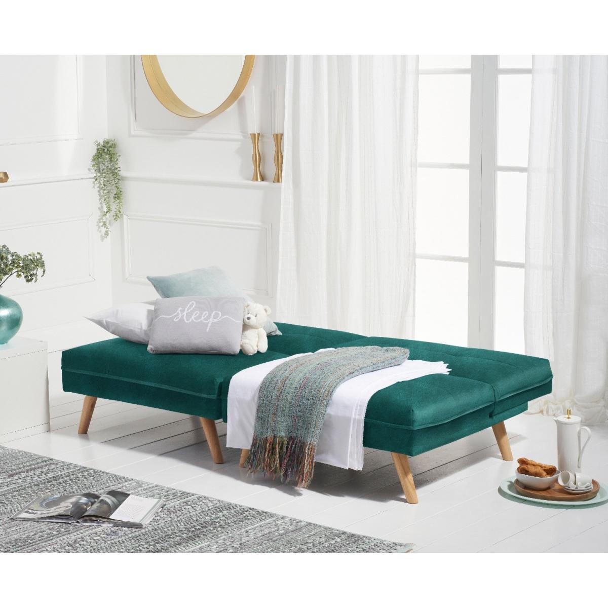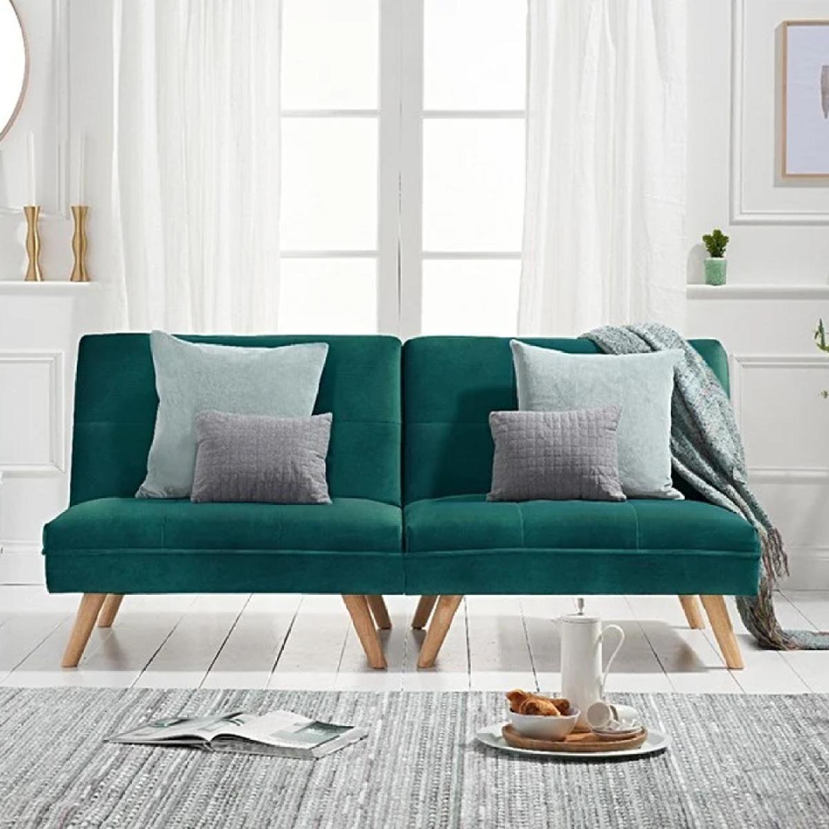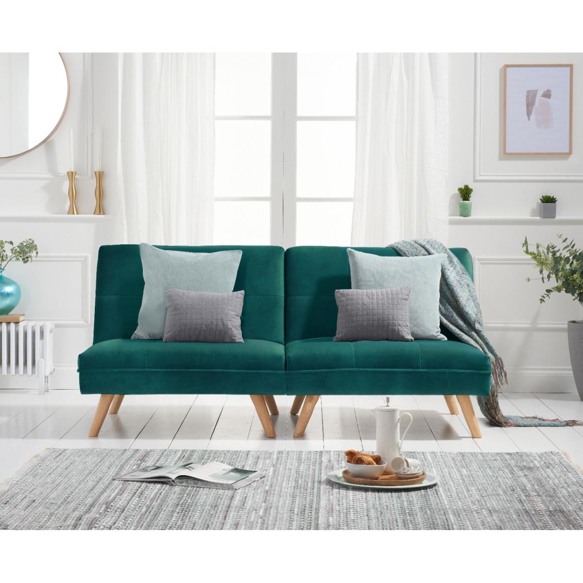 Sleek, stylish and supremely versatile. The eye-catching Ivy Sofa Bed gives the impression of being two chairs whilst, in reality, functioning as a stunning sofa and a double bed option for guests. Clean contemporary lines combine with comfy tufted seats to look striking in modern settings. Immaculately tailored tufted seats in plush velvet or crisp linen. Slightly splayed Oak legs. Versatile design means the Ivy folds in a number of different ways. Comfortably seats three or sleeps two. Choose from blue, grey or green soft velvet or modern grey linen. Just assemble the legs and your sofa is ready!