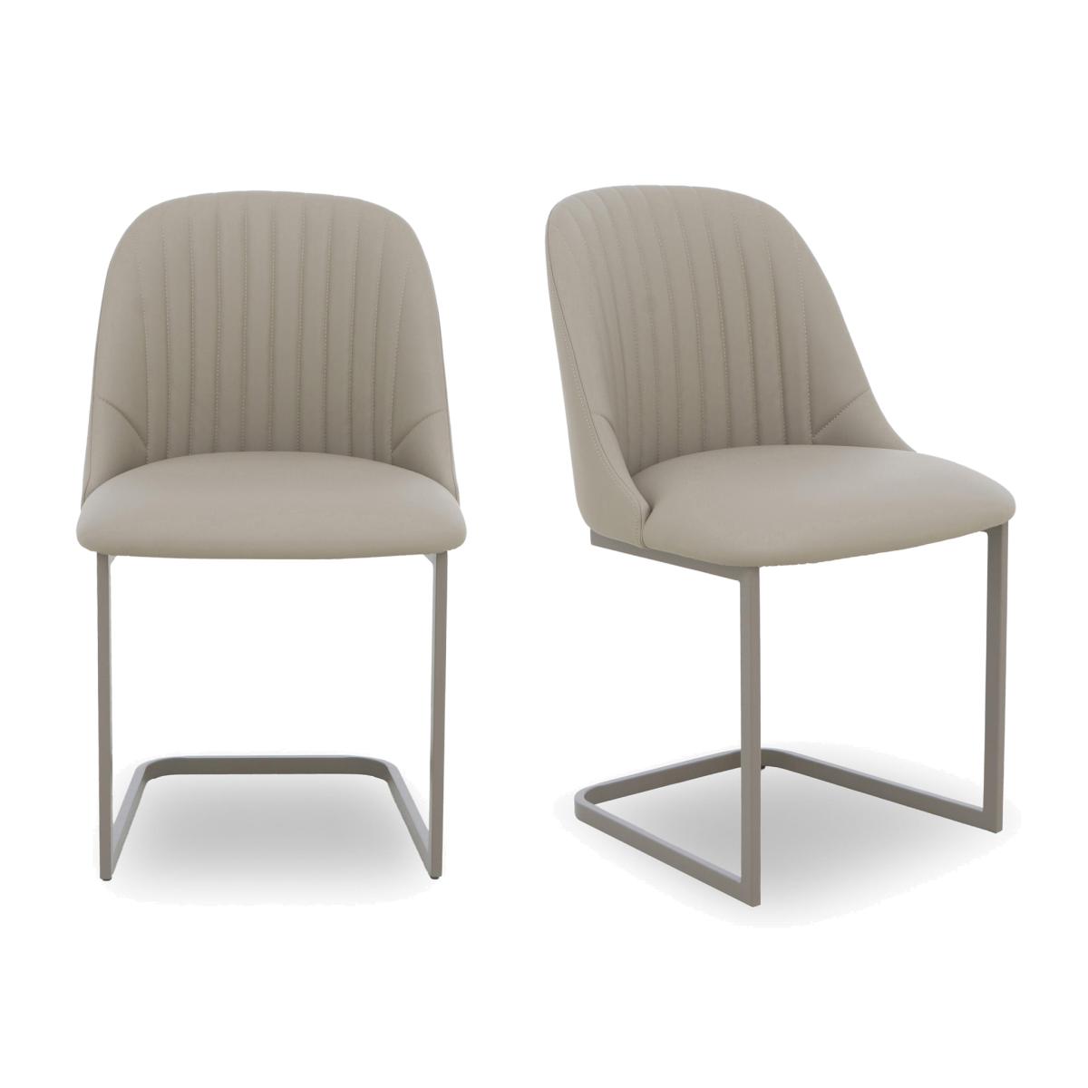 Be a style leader with fabulous furniture for dining rooms and living spaces from our fashion-forward Ivy range. Every piece in the collection brings the wow factor and speaks to your innate sense of interior style, thanks to those deep ceramic surfaces and fabulous fluted frames and table bases. Throughout, you’ll find a high-gloss finish for that extra touch of luxury. Statement details abound, from the dramatic split pedestal bases to the coordinating fluted stitching that adorns the cantilever dining chairs. The Ivy range is exclusively available at Furniture Village. As striking as they are comfortable, the dining chairs in our Ivy range have metal cantilever bases and supportive curved seats upholstered in faux leather and embellished with fluting. Why you'll love it Show off your fabulous sense of style with the fashion-forward Ivy range. Pair of stylish modern dining chairs with metal cantilever bases. Comfortably curved body-hugging seats. Fully upholstered in pale grey faux leather. Fluted stitching detail is inspired by the range’s tables and storage furniture. Also available in sets of 4 and 6 dining chairs. The Ivy range is only at Furniture Village. This pair of dining chairs is part of our Ivy range. What you need to know Metal frames and legs. Cushioned with foam. Item code: IVY-2CH---001