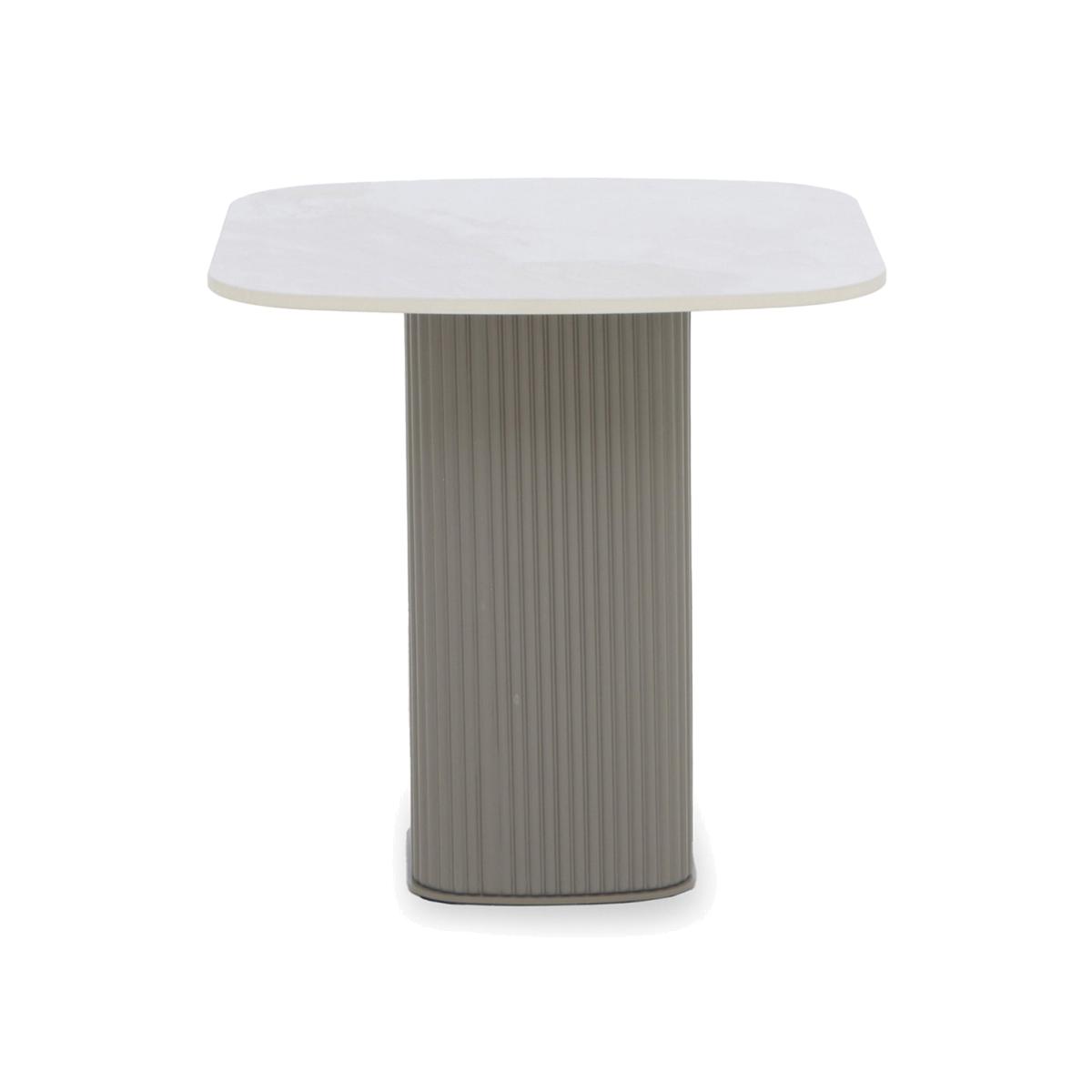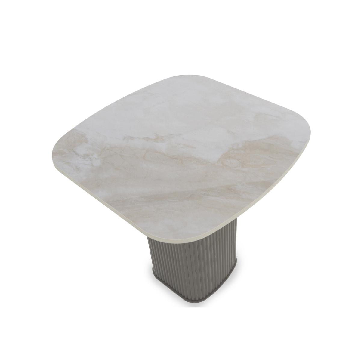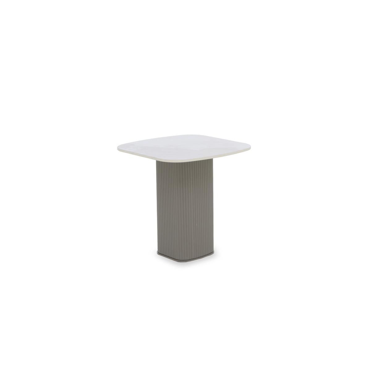 Be a style leader with fabulous furniture for dining rooms and living spaces from our fashion-forward Ivy range. Every piece in the collection brings the wow factor and speaks to your innate sense of interior style, thanks to those deep ceramic surfaces and fabulous fluted frames and table bases. Throughout, you’ll find a high-gloss finish for that extra touch of luxury. Statement details abound, from the dramatic split pedestal bases to the coordinating fluted stitching that adorns the cantilever dining chairs. The Ivy range is exclusively available at Furniture Village. Free your inner interior designer with our striking Ivy range. This side table showcases high-gloss yet hardwearing finishes in its beautiful ceramic top and fluted base. Why you'll love it Show off your fabulous sense of style with the fashion-forward Ivy range. Top-to-bottom high-gloss look brings home sophisticated luxury. The curved ceramic top of this side table brings the wow factor. Dramatic split pedestal base with an elegant fluted finish sits on a metal plinth. Superb quality 11 mm deep ceramic top is very hardwearing. It’s also heatproof, scratch-resistant and chip-resistant. Versatile neutral palette suits modern décor schemes. The Ivy range is only at Furniture Village. This side table is part of our Ivy range. What you need to know We recommend using coasters and placemats at all times. Easy to care for. Simply wipe with a clean, slightly damp cloth. Item code: IVY-STBL--001