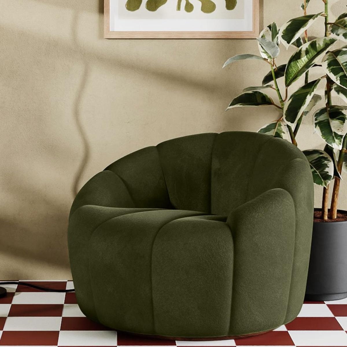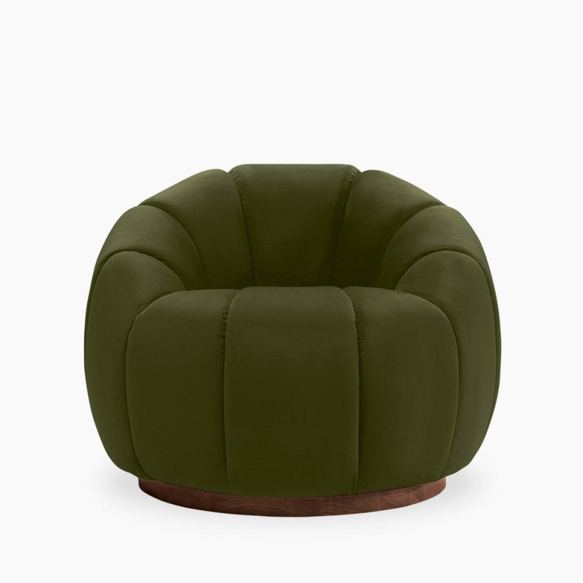 Ivy Swivel Armchair, Olive Green Sustainable Velvet