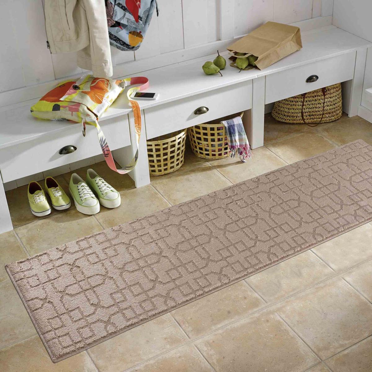 Our IVY 9 MM Gel-Back 100 polypropylene Mats Collection are suitable for tiles, lino, laminate, and wood flooring with non-slip latex backing. the collection comes in a variety of different colours, patterns (Greek Key, Trellis) and sizes to fit any colour scheme and interior. These mats are fully machine washable at 30 degrees for easy cleaning. Additionally, great for long-lasting use. Made with Polypropylene, the Mat is anti-skid and anti-slid, so no need to worry when walking (or running) around the home. Rooms around the home that could benefit from a washable all-purpose Mat include entranceways, kitchens, bathrooms, conservatories, kids' bedrooms, and playrooms. Please note We have made every effort to display as accurately as possible the colours and images of our products that appear on the page by working with professional photographers. We cannot guarantee that your computer monitor's display of any colour will be 100 accurate. Product Care The Gel-Back All-Purpose Rug can be machine washed at 30 degrees centigrade.