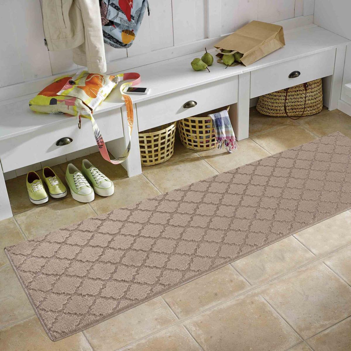 Our IVY 9 MM Gel-Back 100 polypropylene Mats Collection are suitable for tiles, lino, laminate, and wood flooring with non-slip latex backing. the collection comes in a variety of different colours, patterns (Greek Key, Trellis) and sizes to fit any colour scheme and interior. These mats are fully machine washable at 30 degrees for easy cleaning. Additionally, great for long-lasting use. Made with Polypropylene, the Mat is anti-skid and anti-slid, so no need to worry when walking (or running) around the home. Rooms around the home that could benefit from a washable all-purpose Mat include entranceways, kitchens, bathrooms, conservatories, kids' bedrooms, and playrooms. Please note We have made every effort to display as accurately as possible the colours and images of our products that appear on the page by working with professional photographers. We cannot guarantee that your computer monitor's display of any colour will be 100 accurate. Product Care The Gel-Back All-Purpose Rug can be machine washed at 30 degrees centigrade.