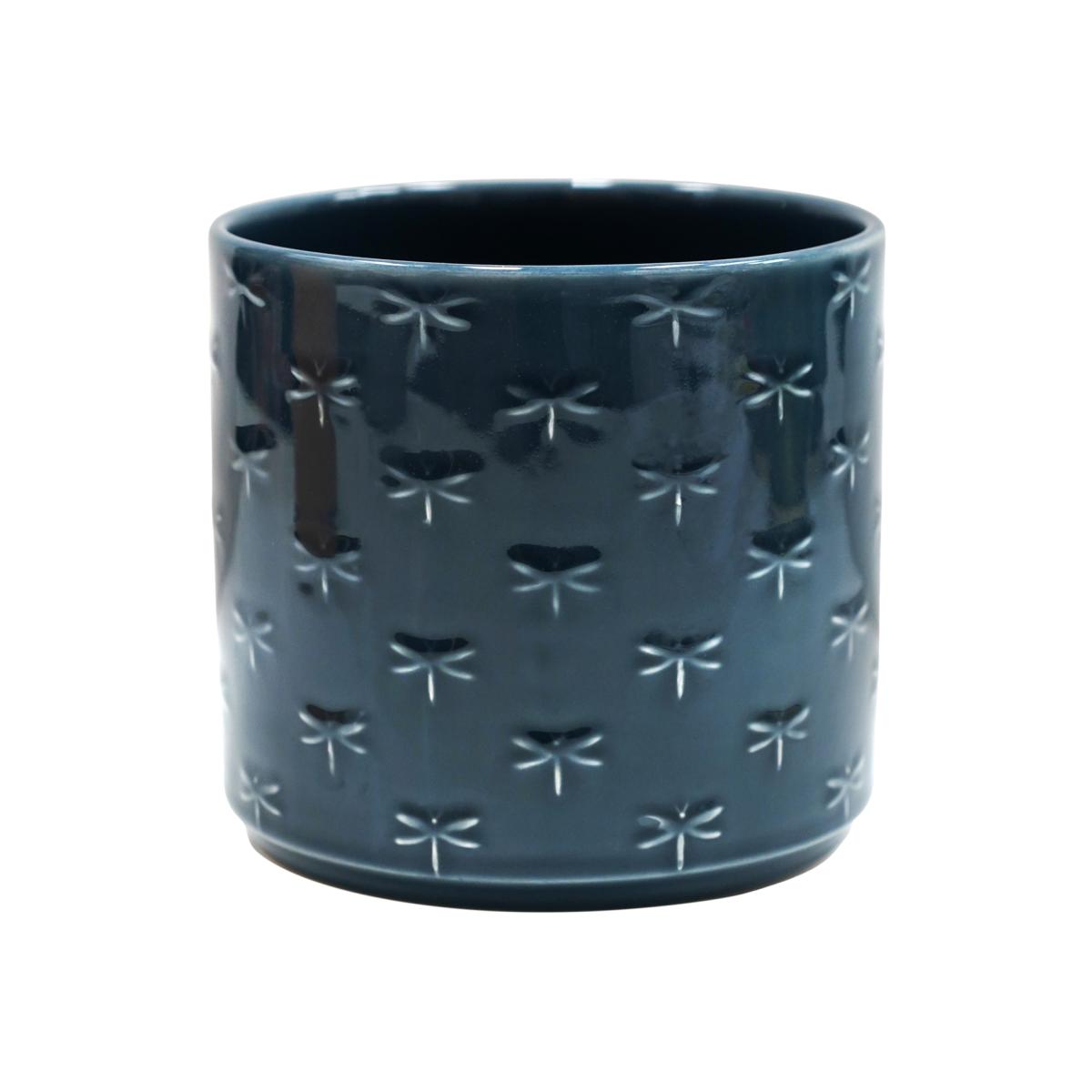Introducing the Ivyline Arley Dragonfly Planter in blue, an indoor planter designed to impress with its vibrant blue glaze and embossed dragonfly decoration. Crafted in Europe, this earthenware planter features a premium quality glaze, a lightweight design, and a waterproof finish. The blue colour and glossy sheen, enhanced by the embossed dragonfly pattern, exude luxury. Style yours with a parlour palm to encapsulate elegance in any indoor space.