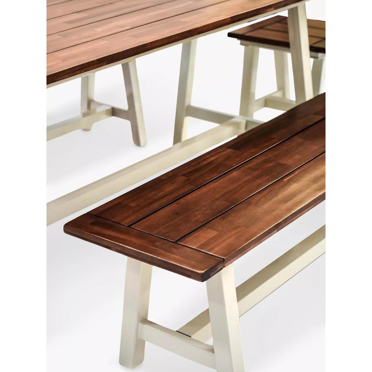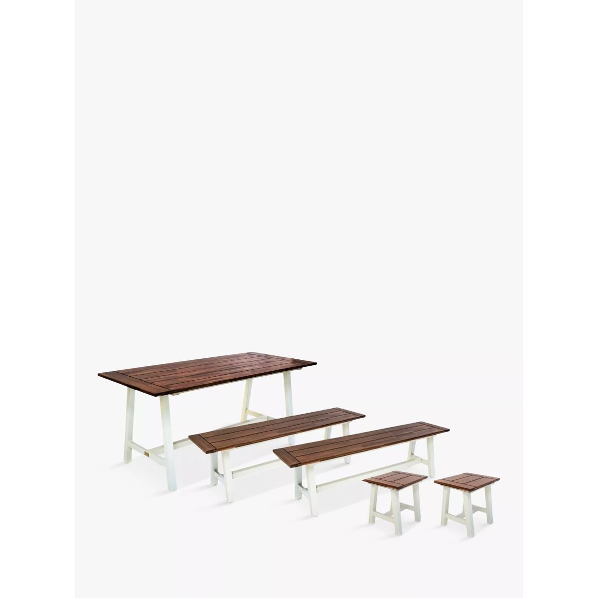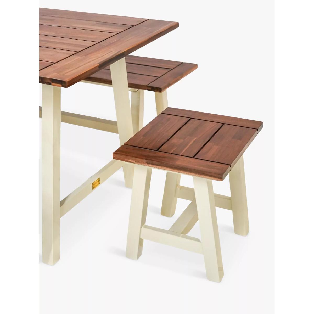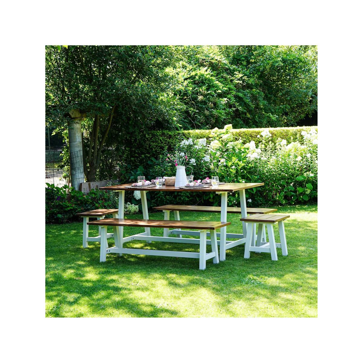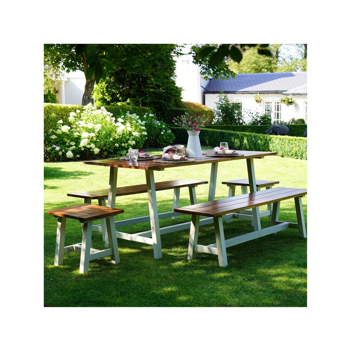 This Broadway garden dining set from Ivyline is made of warm-toned acacia hardwood with robust powder-coated steel. Bringing a touch of sophistication to the garden or home, the rectangular table, two benches and two stools seat six to eight people comfortably and provide an inviting place to socialise and unwind. Seat height: 46cm.