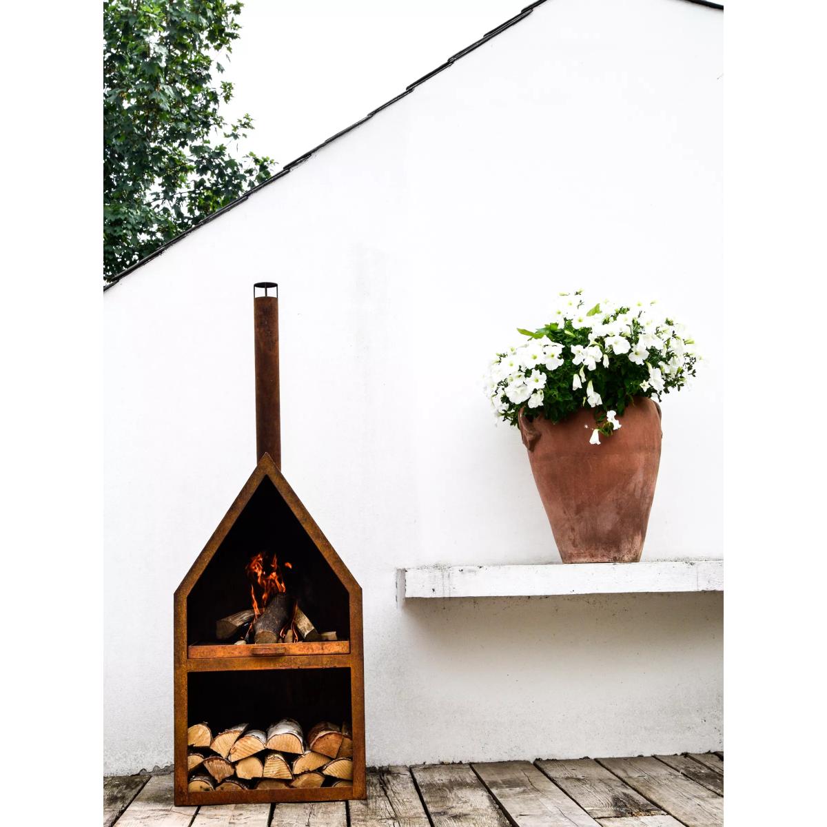 Make evenings last longer outdoors with the Henley firepit from Ivyline, a contemporary chiminea design and a focal and social point of the garden. Suitable for cooking, it boasts a stainless steel griddle, an area for lit logs and a space for storing extra wood supplies. Crafted from iron, the Henley is fully assembled, ready to use.