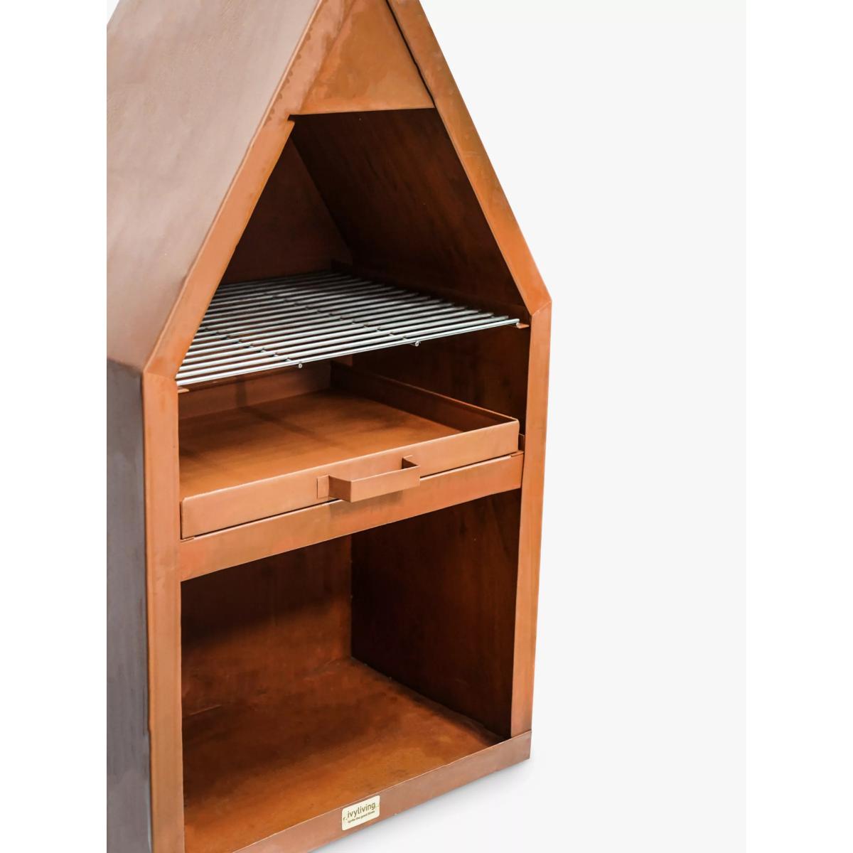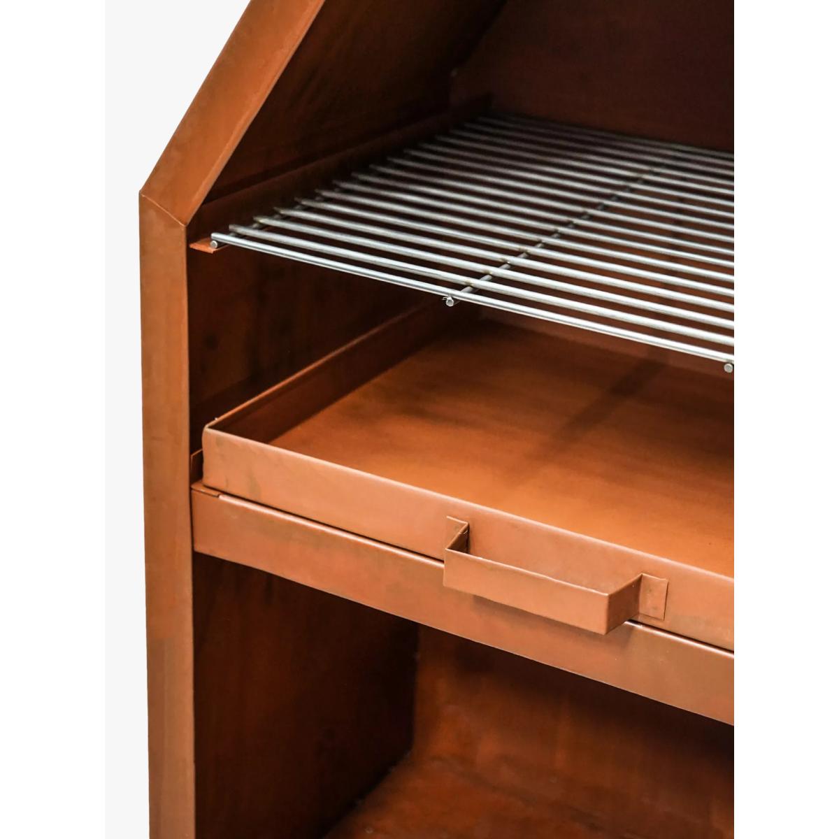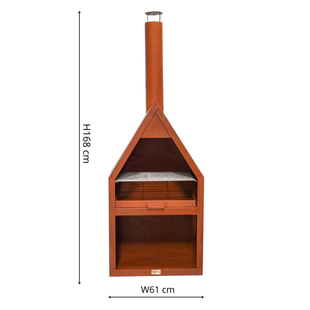 I really like this firepit for its sleek, modern look that works well in contemporary or minimalist settings. The chimney detail adds a functional yet stylish touch, making it an eye-catching centrepiece in a patio or garden space. It’s versatile enough to suit urban courtyards as well as more rustic outdoor areas. For styling, consider pairing it with weatherproof rattan furniture or concrete accessories for a cohesive look. Adding some low-level lighting and natural elements like stone or wood around it can enhance its visual appeal. Practical tip: it’s perfect for those who want to enjoy outdoor cooking but prefer a clean, fuss-free aesthetic that can double up as a striking feature when not in use.