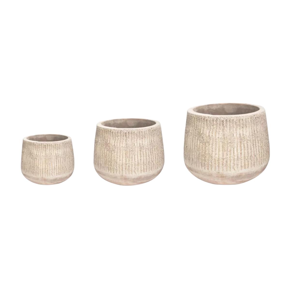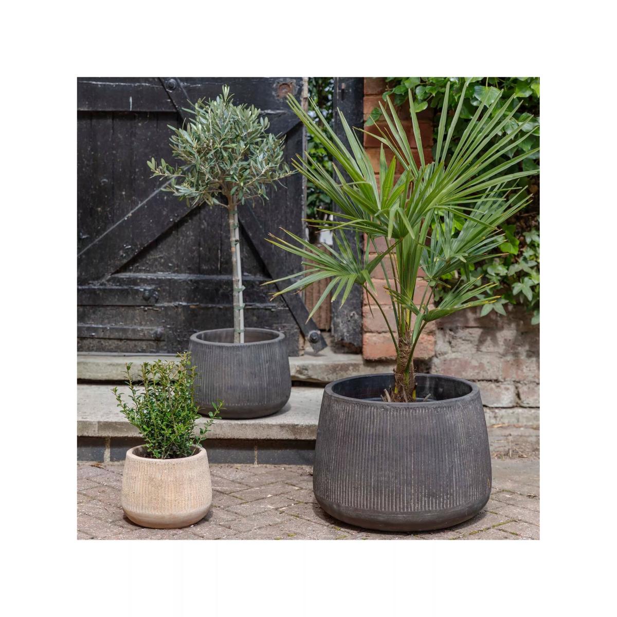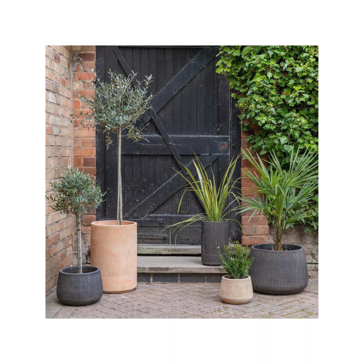 A trio of Hidcote outdoor planters in different sizes, handmade from terracotta and designed for both style and durability. UV-stable and frost-proof, they're built to last in all conditions. With an on-trend linear, textured design, these planters are great for adding a modern touch to any space.