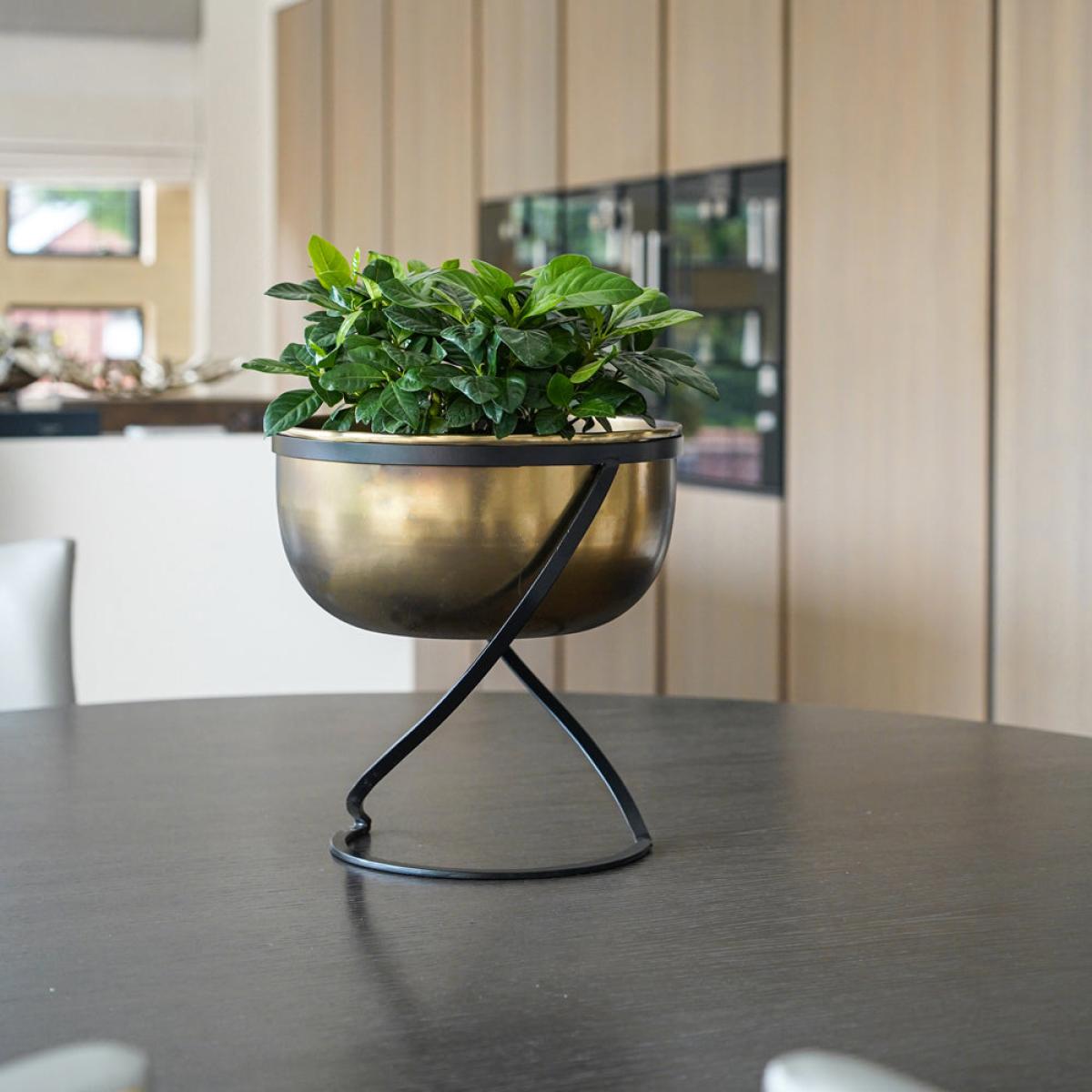 Introduce a distinctive twist to your living room décor with our indoor Kensington metal planter. Waterproof for practical plant health, this brass-finish accent piece on a modern twisted stand is perfect for spotlighting your favourite Chinese evergreen plant, but looks just as wonderful when styled alone. Dimensions: H: 30 x W: 28 x D: 28 cm Materials: Metal Assembly Required: No Care Instructions:Dust wipe a clean, soft cloth. No harsh abrasives or cleaners Additional Information: Waterproof, Premium quality