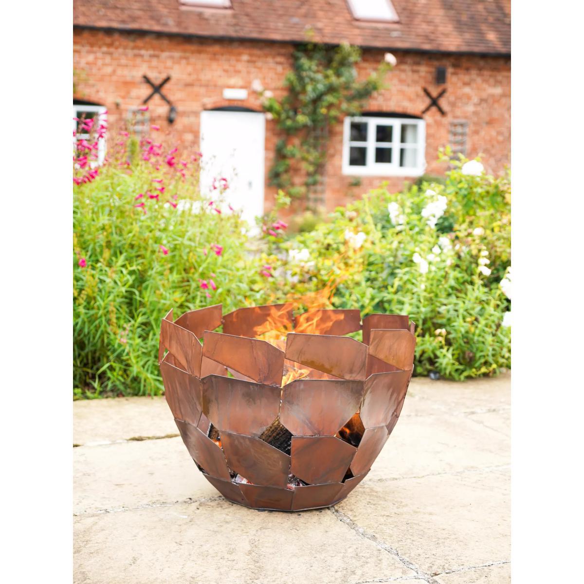 I love this copper firepit bowl for its contemporary take on outdoor heating, adding a sleek industrial edge while remaining functional. Its warm metallic finish makes it a versatile piece that pairs well with both modern and rustic exteriors, especially in garden or patio settings. When styling, consider placing it on a stone or concrete surface to enhance the industrial vibe, and pile around it with textured cushions or lanterns for a cosy garden atmosphere. For practical tips, ensure it’s positioned on a non-flammable surface and kept away from overhanging trees or structures. Its bold, geometric design also works well as a statement piece in open-plan outdoor spaces, providing both warmth and visual interest.