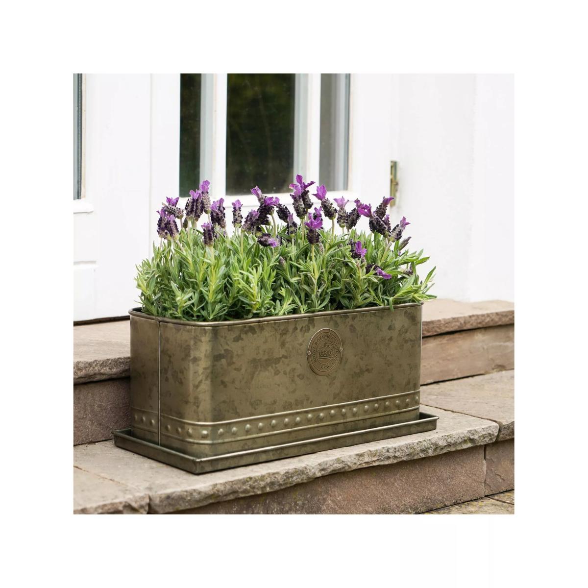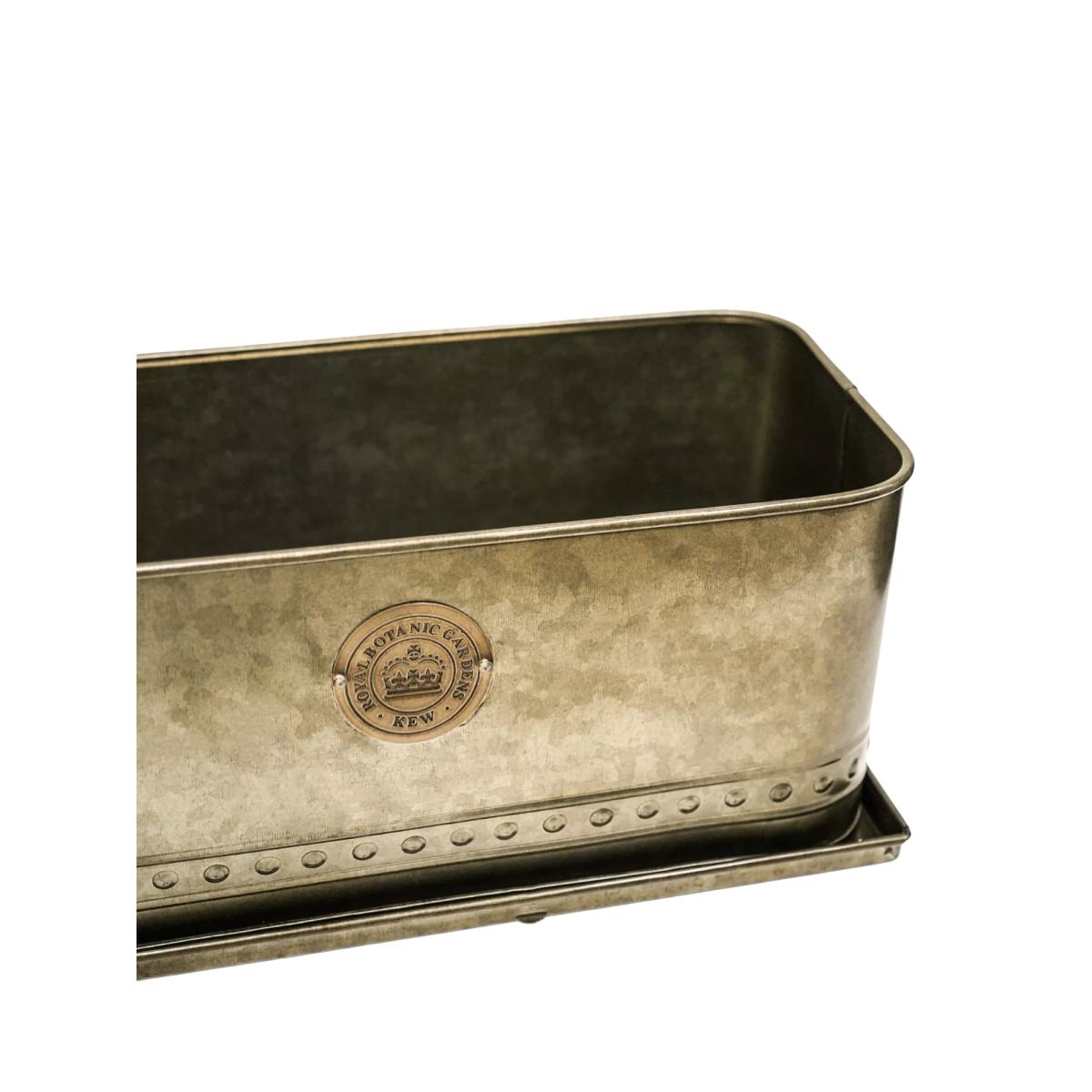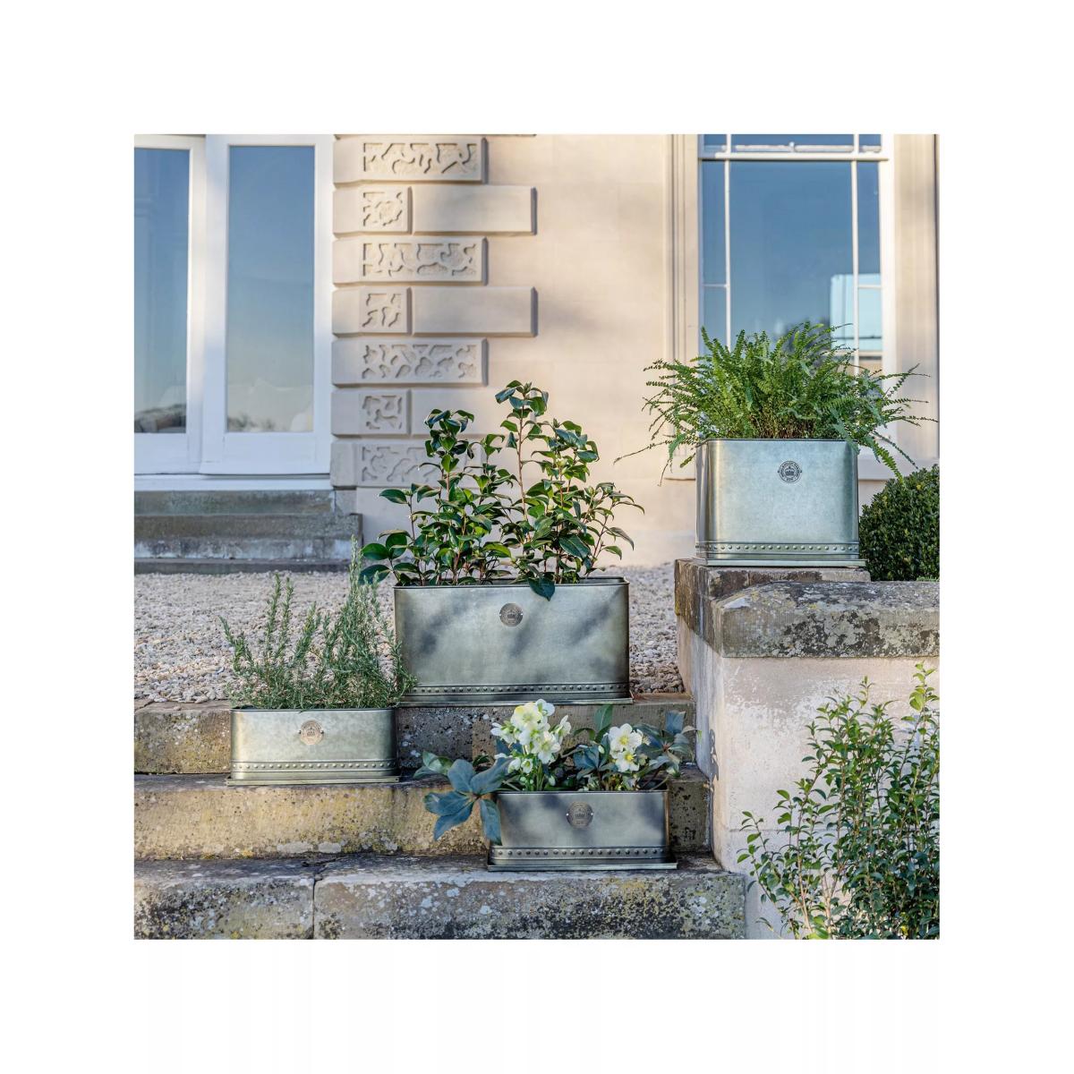 Show off your perennials in style all year round with this rectangular Regency planter, hand-finished in India and made with rust-resistant galvanised steel. Frost-proof and UV-stable. Comes with a tray base to retain water if required. Part of Ivyline's outdoor collection inspired by the flora and fauna that make the Royal Botanic Gardens, Kew so iconic.