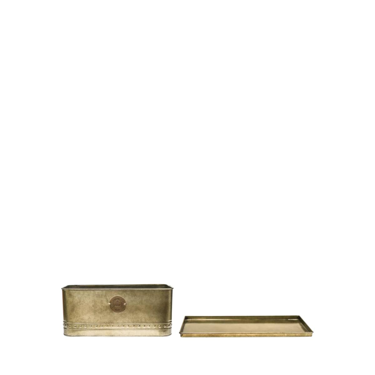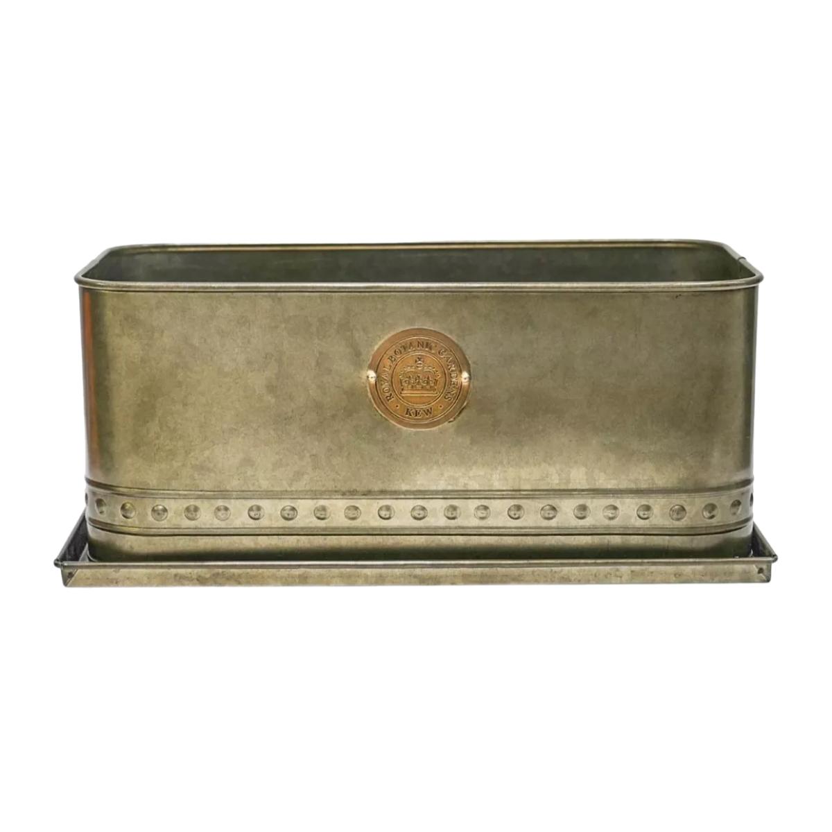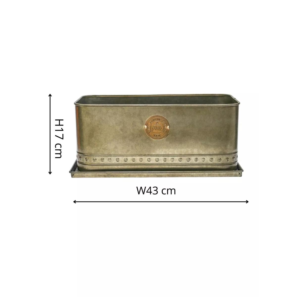 Ivyline Kew Rectangular Square Galvanised Metal Outdoor Planter, 43cm, Aged Brass
