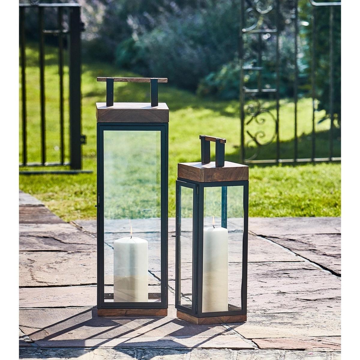 Ivyline Large Black Acacia Wood Tall Lantern Grace