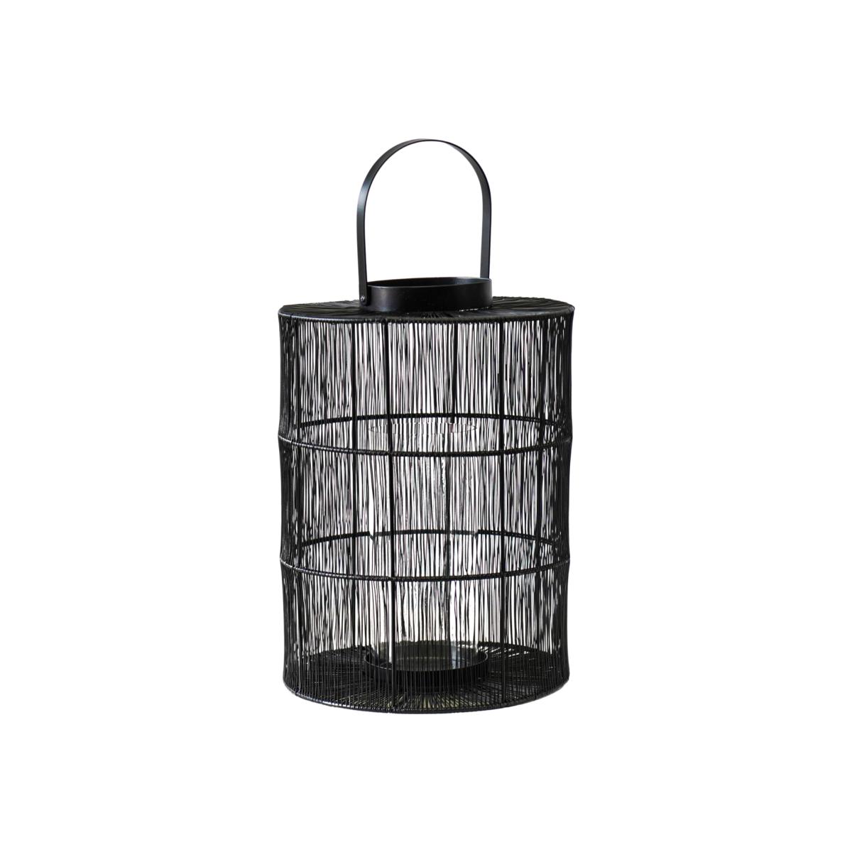 Ivyline Large Black Outdoor Wire Lantern with Glass Insert Portofino