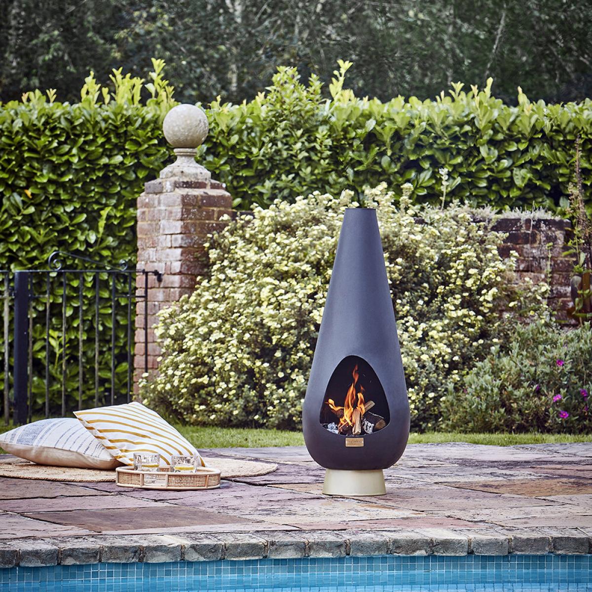 Extend your time spent outdoors with this Leo fireplace from Ivyline. Made from powder-coated steel in matt black and antique gold tones, this sleek design is perfect for transforming any garden.