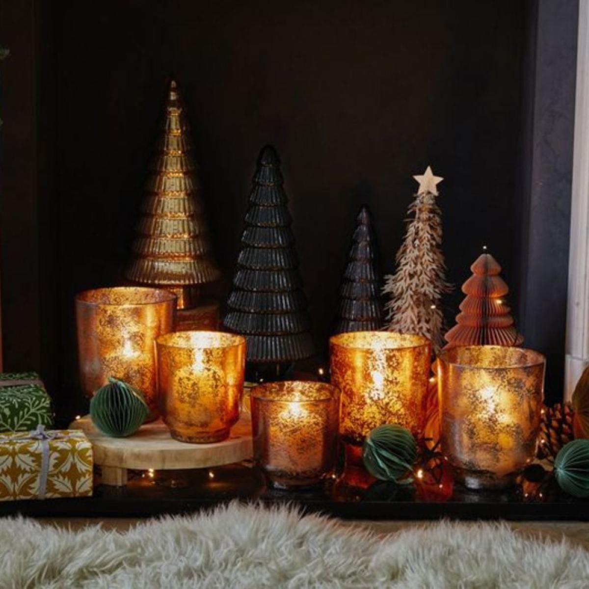 Bring some twinkle to your table setting with our charming glass holder. With its curved design, metallic copper sheen and antique effect, this delightful accent brings illumination (quite literally) to your festive décor. Simply pop a tealight inside and watch your living space come to life.