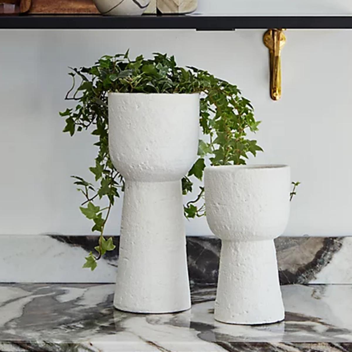 Make a striking statement in your home with our towering Nico tall planter that can’t help but catch the eye. Available in two sizes, the dramatic planters will elevate your greenery and help to enlarge small spaces around your home. Handmade in Europe, they are immaculate and unblemished with their modern and immaculate rustic white exterior and would fit well with both thrillers and spillers. Dimensions: Small - H: 26 x W: 15 x D: 15 cm Large - H: 38 x W: 16 x D: 16 cm Materials: Stoneware Assembly Required: No Care Instructions:Dust wipe a clean, soft cloth. No harsh abrasives or cleaners Additional Information: Waterproof, Premium quality, Hand finished