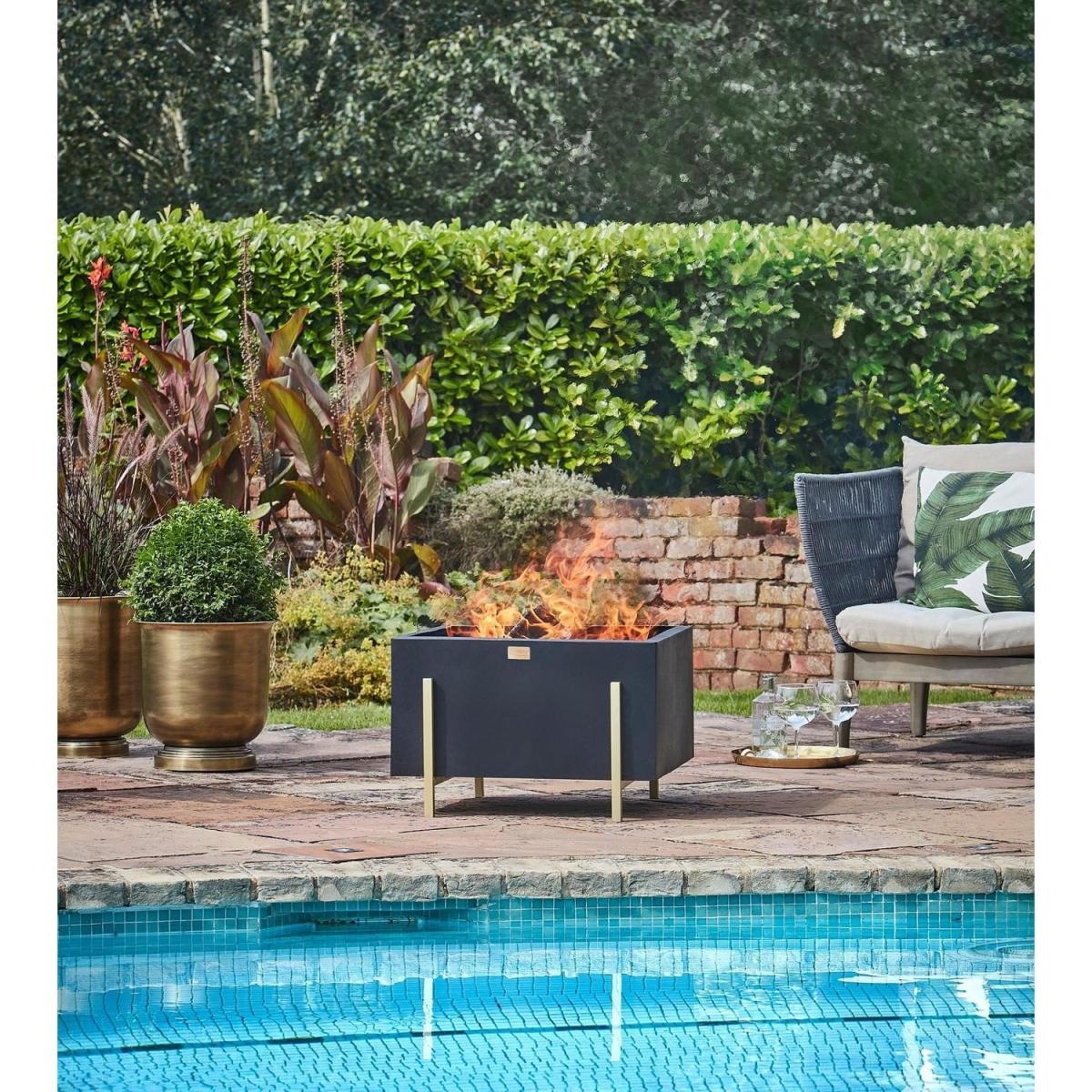 I love this firebowl for its modern, geometric design and versatile colour palette, making it an adaptable piece for various outdoor settings. It works particularly well in contemporary and minimalist gardens, as well as transitional spaces that combine classic and modern elements. The matte black and antique gold accents add a touch of sophistication without feeling overly formal, allowing it to blend seamlessly with both lush greenery and industrial-inspired decor. Practical styling tips include pairing it with neutral outdoor furniture to let the firepit become a statement piece, and adding cosy cushions and throws nearby for comfortable evenings. Keeping it as a focal point in your outdoor living area can elevate the space, encouraging relaxed social gatherings around the warmth of the fire.