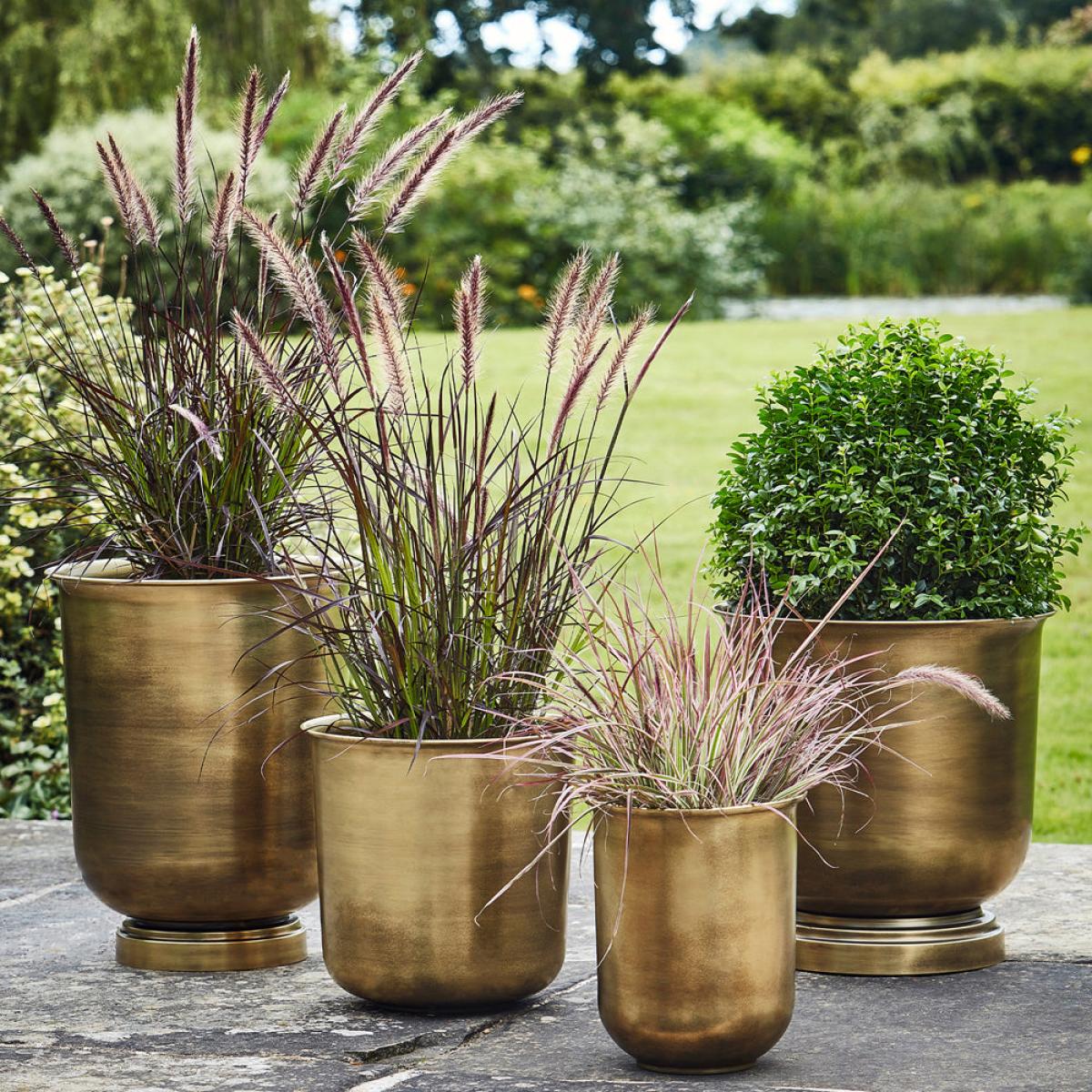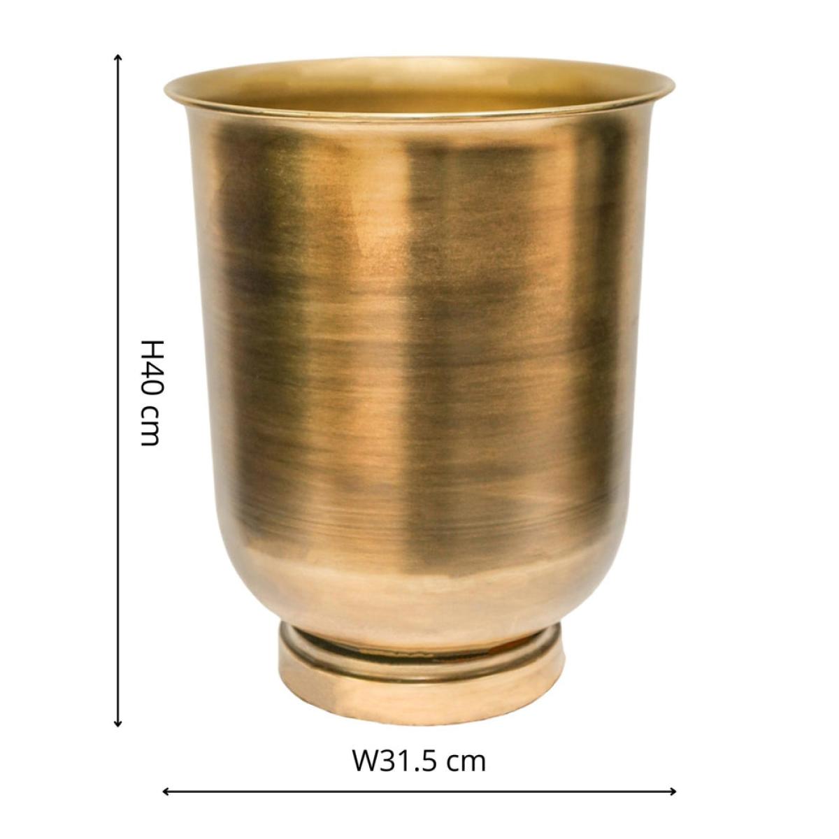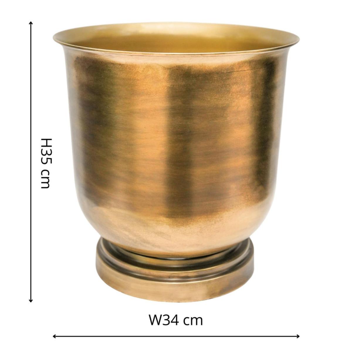 Frost and rust-resistant, this outdoor Hampton antique brass urn has a wonderfully luxurious feel and is in fact fresh from the design studio. Stable in the sunlight (and thus suitable for outdoors), this curved planter is perfect for enhancing your outdoor living space with your favourite flora and shrubbery. What's more, it's lightweight so you can position it with ease. Dimensions:Tall - H: 40 x W: 31.5 x D: 31.5 cm Wide - H: 35 x W: 34 x D: 34 cm Materials: Metal Assembly Required: No Care Instructions:Dust wipe a clean, soft cloth. No harsh abrasives or cleaners Additional Information: Rust resistant, UV stable, Premium quality, Suitable for outdoors, Frost resistant, Lightweight