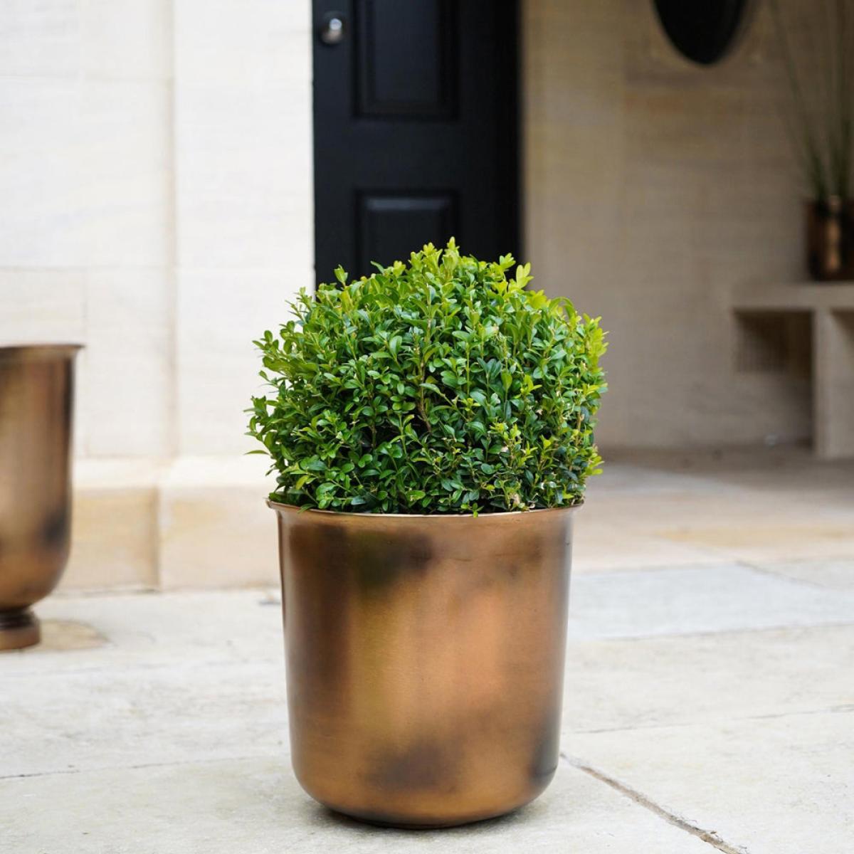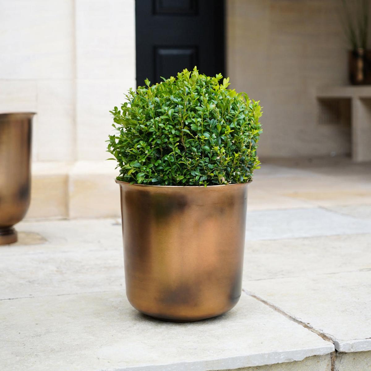 Frost and rust-resistant, this outdoor Hampton copper planter has a wonderfully luxurious feel and is in fact fresh from the design studio. Stable in the sunlight (and thus suitable for outdoors), this curved planter is perfect for enhancing your outdoor living space with your favourite flora and shrubbery. What's more, it's lightweight so you can position it with ease. Dimensions: H: 28 x W: 27.5 x D: 27.5 cm Materials: Metal Assembly Required: No Care Instructions:Dust wipe a clean, soft cloth. No harsh abrasives or cleaners Additional Information: Rust resistant, UV stable, Premium quality, Suitable for outdoors, Frost resistant, Lightweight