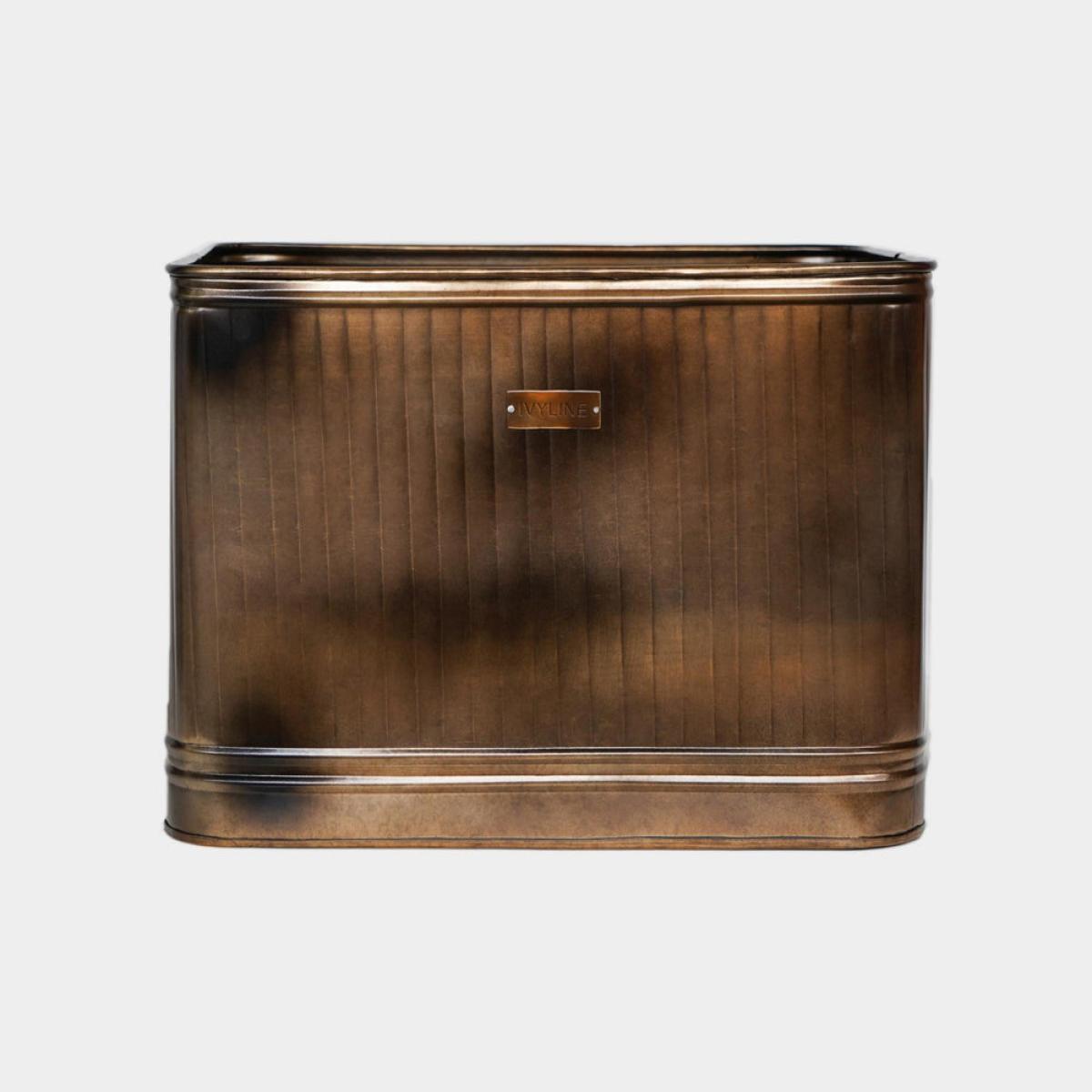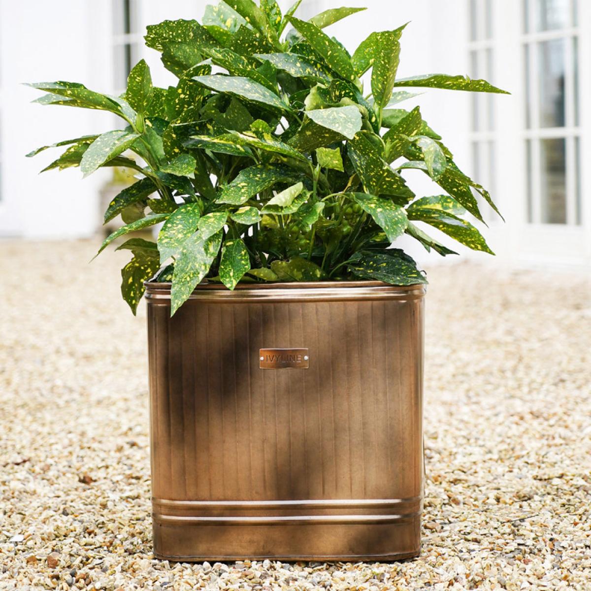 Lightweight and stable in frost and sunlight, this outdoor Hampton planter is a symbol of classic luxury. Rectangular in shape with subtle ridging, this rust-resistant accent piece is lovely encasing shrubbery—or better yet a Canary Island date palm for a striking outdoor statement. This is a design you'll have and love forever. Dimensions: Small - H: 38 x W: 50 x D: 50 cm Large - H: 45 x W: 80 x D: 80 cm Materials: Metal Assembly Required: No Care Instructions:Dust wipe a clean, soft cloth. No harsh abrasives or cleaners Additional Information: UV stable, Premium quality, Suitable for outdoors, Rust resistant, Frost resistant, Lightweight