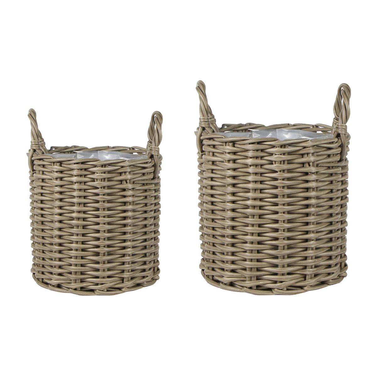 Get your greenery fix in the garden with these planters from Ivyline. Perfect plants, shrubs or even small trees, these planters a perfect for patios especially small terraces or balconies. Made from durable polyrattan, they will help you add a flood of colour to your outdoor space. Key features: * Set of 2 outdoor planters * Material: polyrattan * Dimensions: * Small: H28xØ31cm * Large: H31xØ38cm * Classic woven rattan design * In natural tones * Hand finished * Suitable for outdoor use * Frost & rust resistant * UV resistant