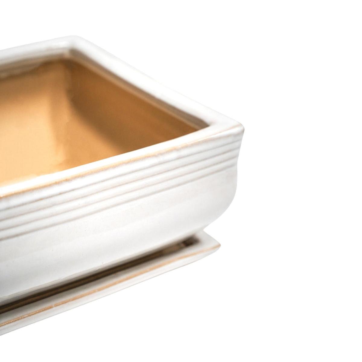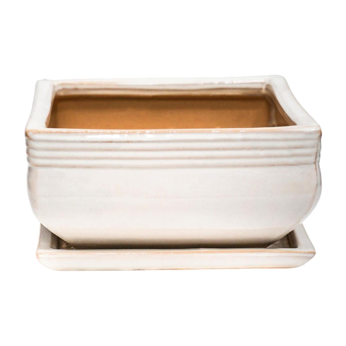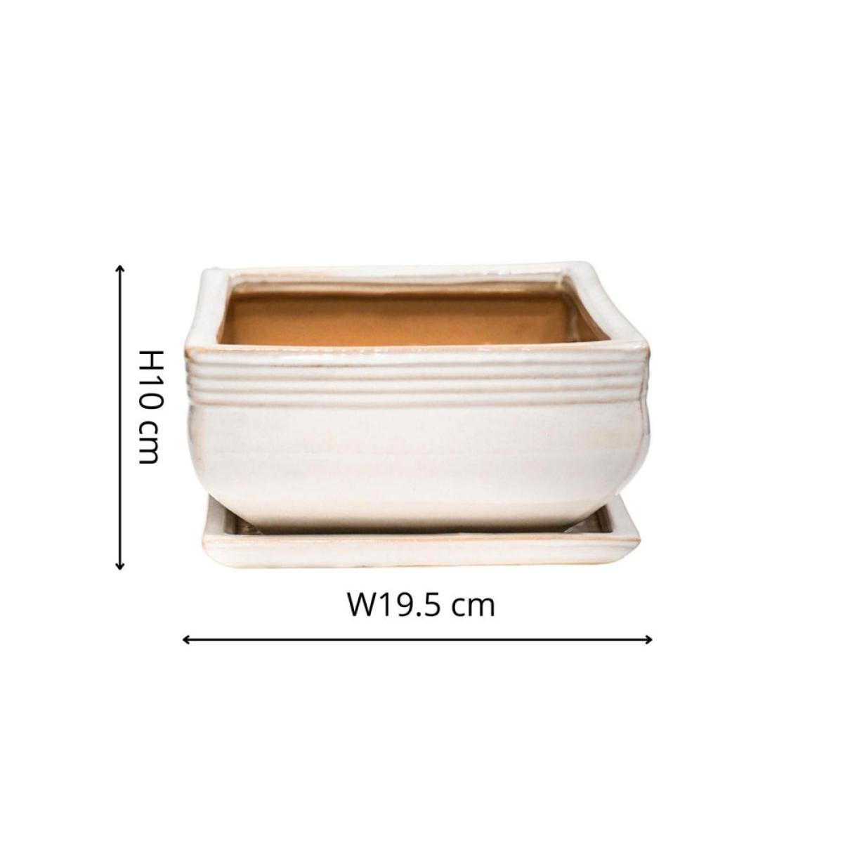 Treated yourself to a Bonsai tree? Wise move. Now it's time to highlight its beauty and this waterproof planter will do so with effortless aplomb. Specially designed for your Bonsai tree, it features a premium glaze and versatile cream finish - you'll be marvelling at the beauty for many years to come. Dimensions: H: 10 x W: 19.5 x D: 19.5 cm Materials: Ceramic Assembly Required: No Care Instructions:Dust wipe a clean, soft cloth. No harsh abrasives or cleaners Additional Information: Premium glaze, Waterproof, Premium quality