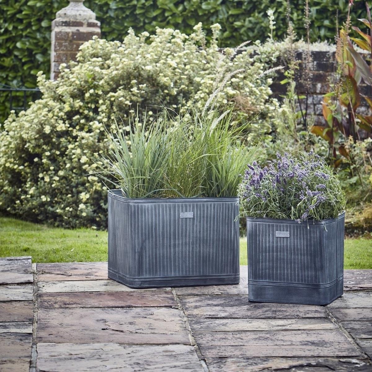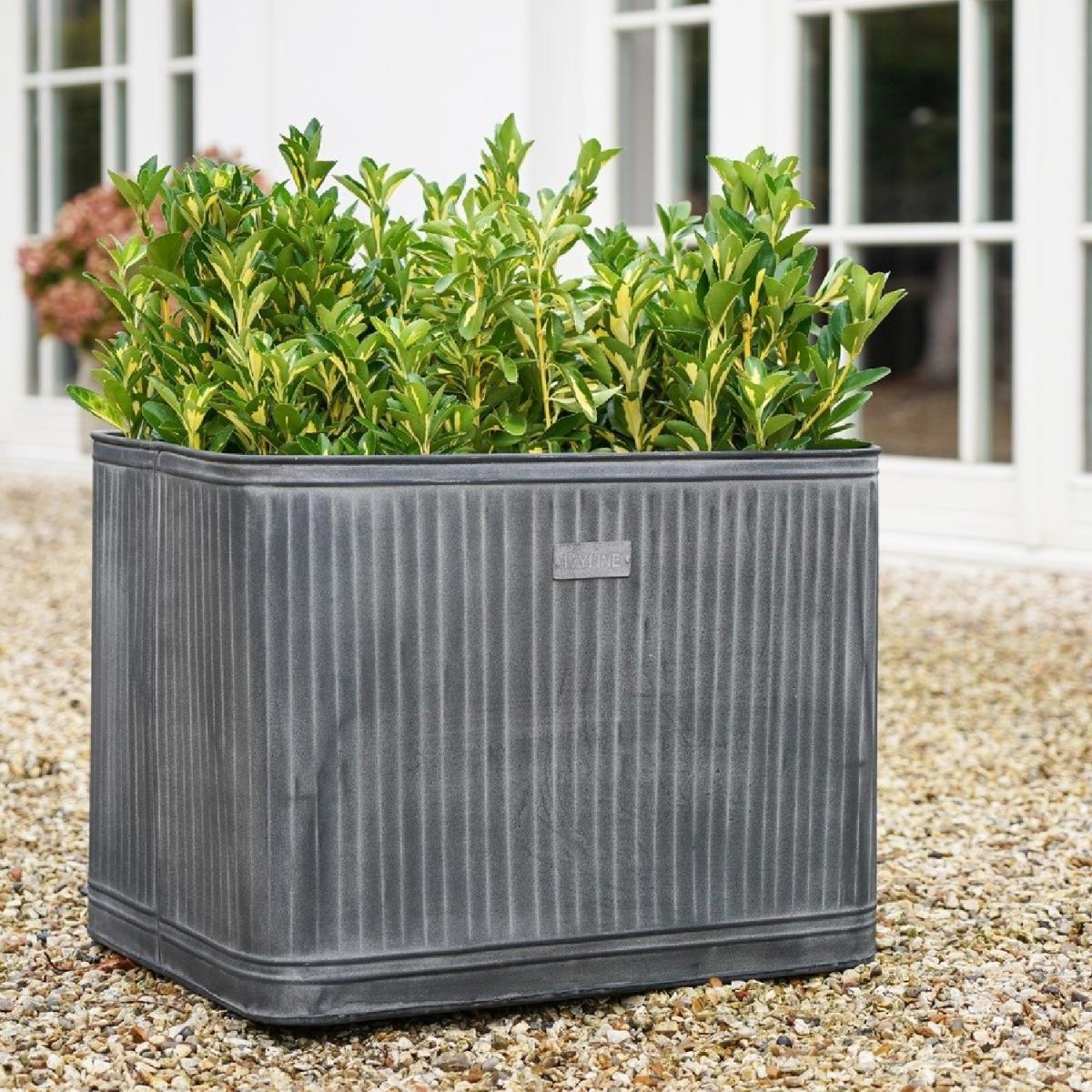 This grey rectangle planter is the perfect addition to any outdoor space. The ribbed design offers sun stability so the colour won't fade. Pair it with the matching planters to create a beautiful garden scene. The timeless design complements any garden and will look great for years to come.