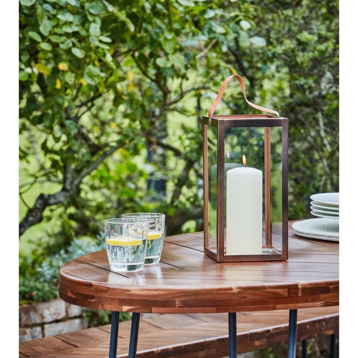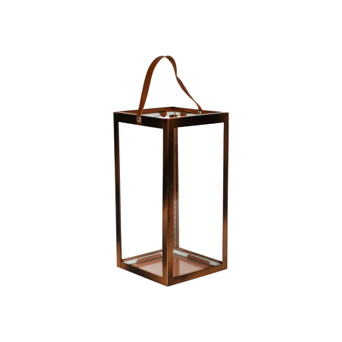 Illuminate your life with the Hampton copper lantern. Truly a striking modern design with its smooth lines made from the finest copper and its handy carry strap at the top that allows you to take it anywhere. The Hampton enhances any indoor or outdoor space. Why not accessorize it with another lantern in a larger size?