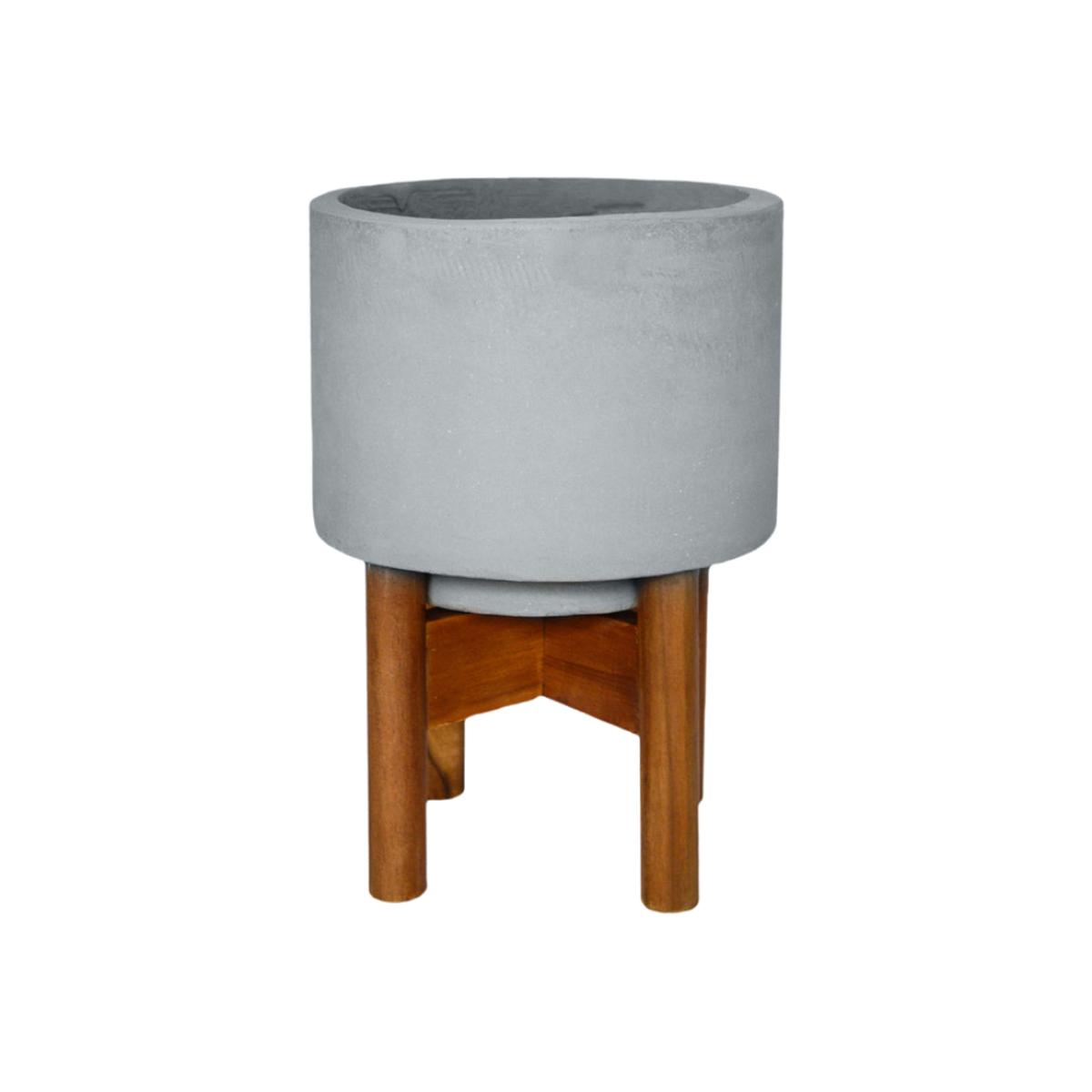 Inspired by Scandi-style interior design, our Vigo concrete planter makes a clean and simplistic style statement. Round in shape with a premium finish and a wooden stand with four legs, it brightens up bare spaces and dull corners perfectly, providing a contemporary accent look with minimal fuss and maximum impact. Dimensions: Small - H: 33 x W: 24 x D: 24 cm Large - H: 37 x W: 28 x D: 28 cm Materials: Cement Assembly Required: No Care Instructions:Dust wipe a clean, soft cloth. No harsh abrasives or cleaners Additional Information: Waterproof, Premium quality