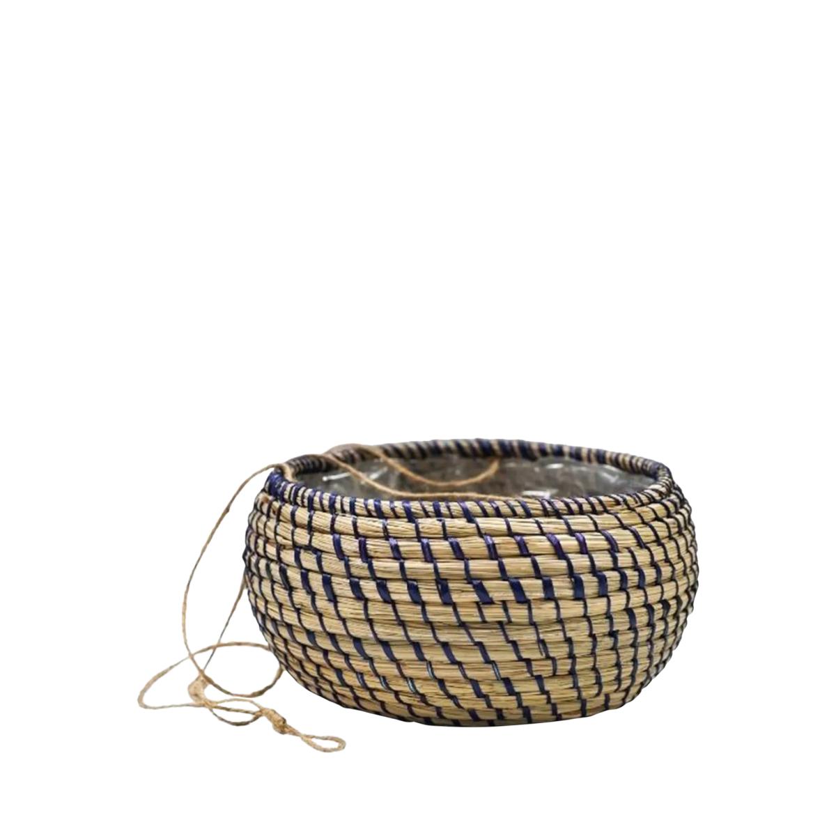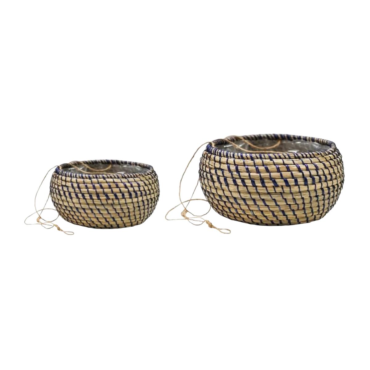 Ivyline Woven Seagrass Indoor Hanging Planter, Set of 2, Navy