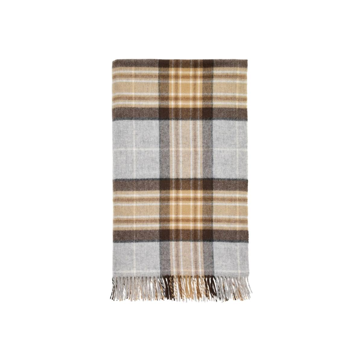 A cozy muddle of toasty browns and moody grays with that can't-fake-it fringe that looks right at home tossed over your reading chair or wrapped around you during those Sunday afternoon naps. Farm-traced British wool that carries the quiet dignity of tradition while somehow knowing exactly where it belongs in your thoroughly modern life.