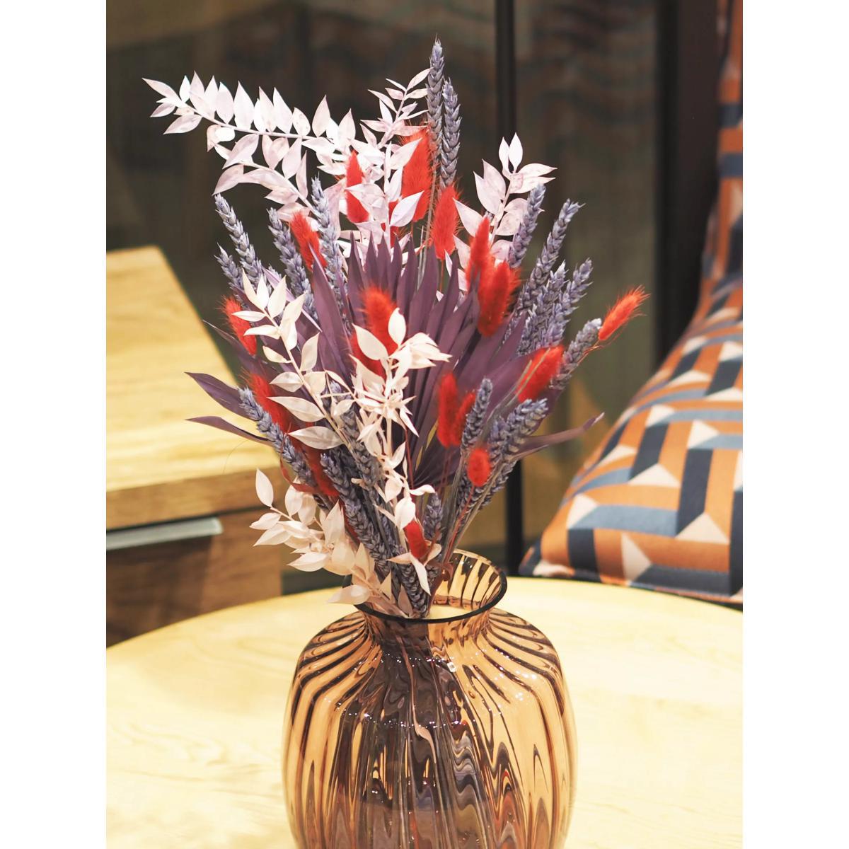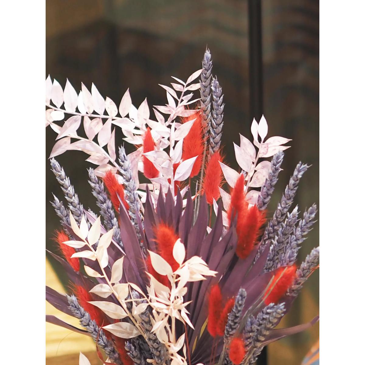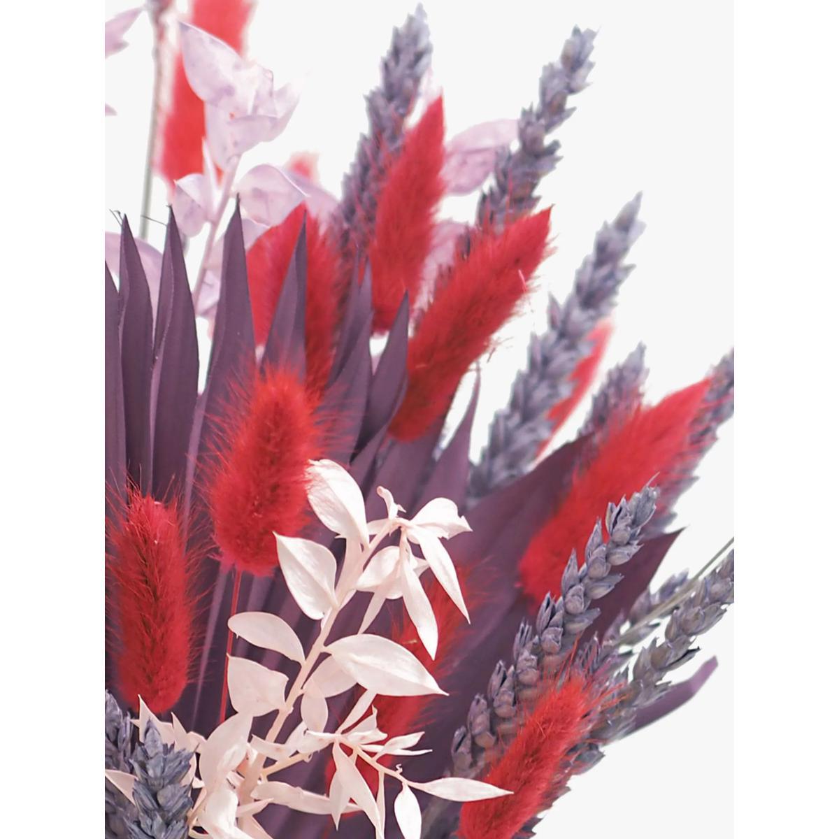 Ixia Flowers' candy coloured dried brights packs a colour pop punch and includes: dried pink ruscus, dried lilac ruscus, dried lilac triticum, dried pink lagurus and dried lilac sun spear. As we only use natural products there will be a small variation in shade and height of individual arrangements. The arrangement is hand tied with twine and packaged with black silk ribbon, in tissue paper, brown paper and our signature ixia Flower Box. Boxes include a gift message of your choice and information on how to care for your arrangement. Care Instructions Remove the packaging from your dried flowers, leave the twine on the arrangement. Place in a clean dry vase, dried flowers do not need water and should be kept away from moisture and humidity. Place your arrangement somewhere where it is not being moved or brushed past to avoid fall out from the stems. Blow the dust off gently from a distance with a hairdryer on cool setting. Dried flowers should be kept out of the reach of children and animals and are not edible. Keep away from soft furnishings as the colour from some stems may transfer