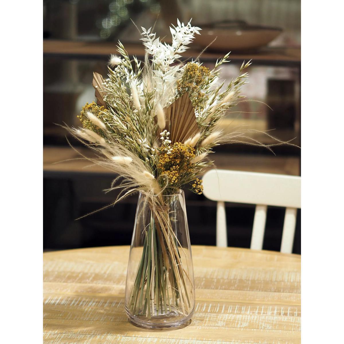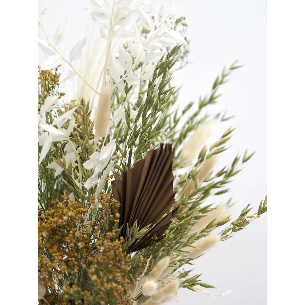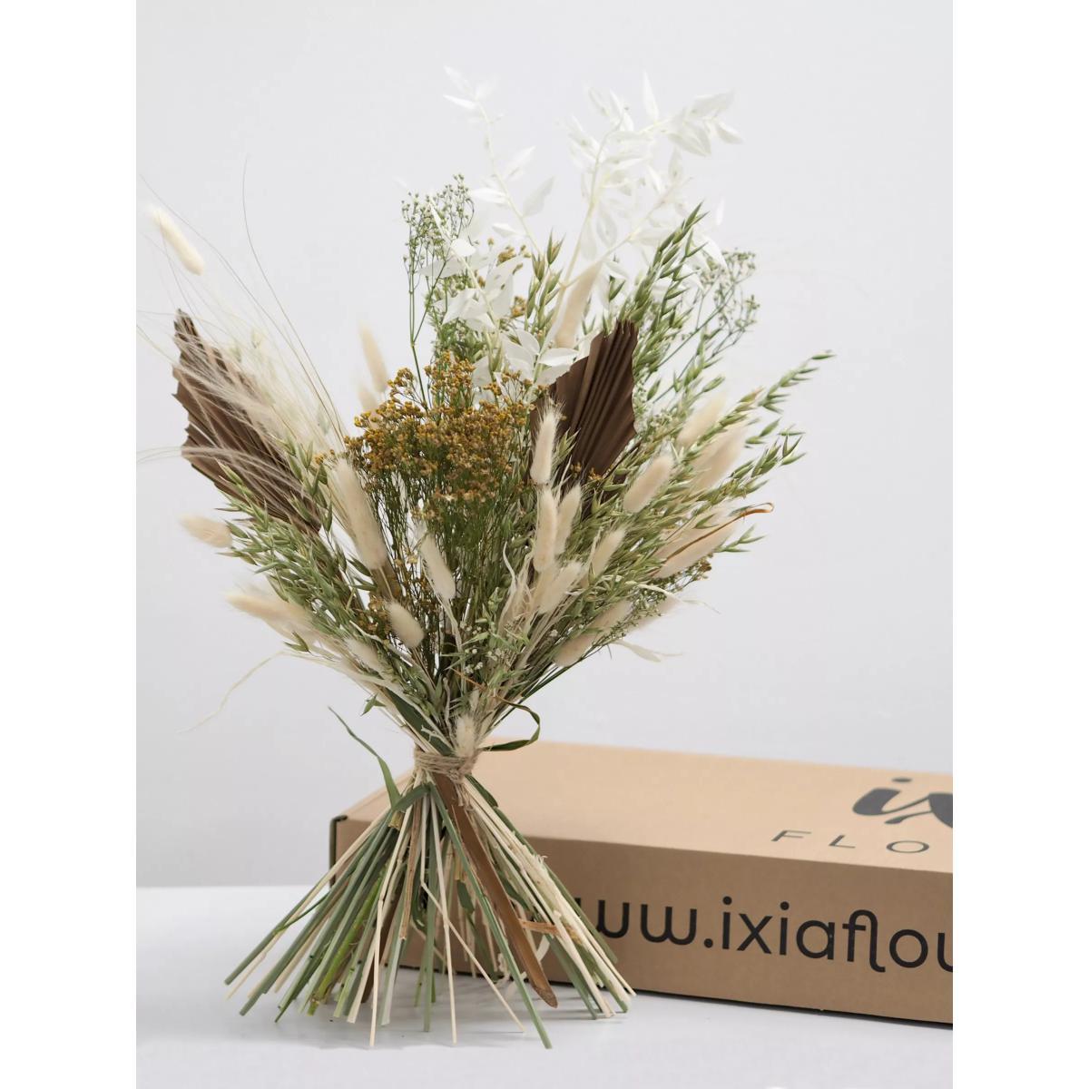 Based on earth and natural tones, dried earth is a textured and detailed dried bouquet including: dried natural avena, dried yellow toned natural broom, light brown palm spear and dried stipa pennata. As we only use natural products there will be a small variation in the height of individual arrangements. The arrangement is hand tied with twine and packaged with black silk ribbon, in tissue paper, brown paper and our signature ixia Flower Box. Boxes include information on how to care for your arrangement. Care Instructions Remove the packaging from your dried flowers, leave the twine on the arrangement. Place in a clean dry vase, dried flowers do not need water and should be kept away from moisture and humidity. Place your arrangement somewhere where it is not being moved or brushed past to avoid fall out from the stems. Blow the dust off gently from a distance with a hairdryer on cool setting. Dried flowers should be kept out of the reach of children and animals and are not edible. Keep away from soft furnishings as the colour from some stems may transfer.
