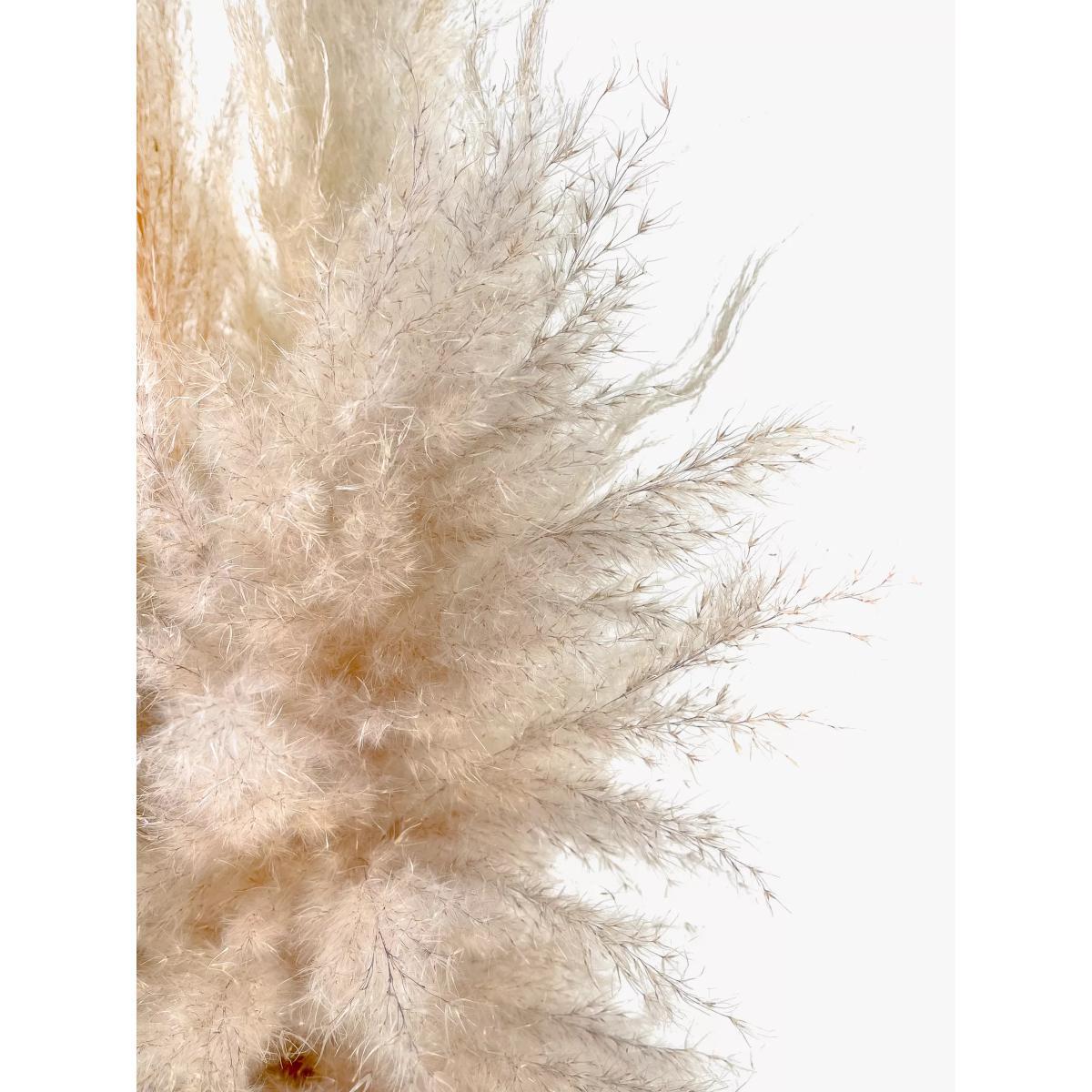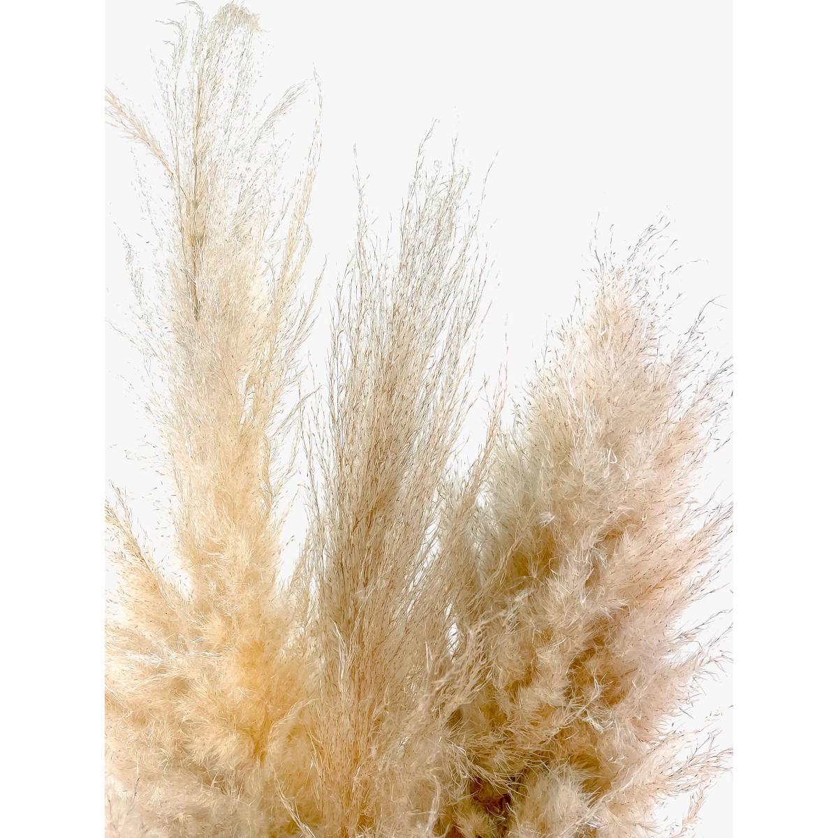 Our Large fluffy natural pampas measures 120 cm in height and is the perfect addition to any room. The stems are perfectly suited to medium to tall vases, are a real statement piece and perfectly tap into the dried flower interiors trend. The stems are natural and undyed, each one is unique and there may be slight variation in colour and thickness. Style in tall vases in the corners of rooms or in front of fireplaces, just be sure to place your pampas away from heat sources and somewhere they are unlikely to be repeatedly knocked as some fibre shed may occur. Care instructions: Unwrap your pampas with care, preferably outside. Shake each stem thoroughly before placing in the vase. Never place your stems in water, or close to naked flames or heating sources. Trim your stems to the desired length using sharp scissors or secateurs and ensure you have an appropriate vase which will not tip. If stems have gathered dust in the vase, set a hairdryer to cool and blow the stems gently from a distance. Some fibre shed is to be expected and does not affect the quality of the stems you receive. Ensure your stems are somewhere dry, keep away from moisture and water, and avoid placing stems where they are likely to be repeatedly knocked.