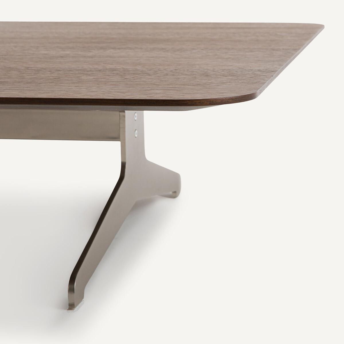 Designed for large spaces and spacious sofas, Ixon is a coffee table with a generous square shape. The thin walnut top reveals an organic shape. With its rounded corners, it has a charming, welcoming feel. Under the top with its light, almost floating design, there is a thin satin nickel base. An extra-large coffee table by AMPM.Product Details • Large square top in FSC® walnut veneered MDF • Nitrocellulose finish • Chamfered edges • Slim satin nickel finish steel base. Dimensions • Width: 120cm • Depth: 120cm • Height: 30cmDelivery:. Sold with feet to be attached. Note! Please check that all access points are large enough to accommodate your delivery (doors, stairs, lifts). • WOOD FROM SUSTAINABLY MANAGED FORESTS. FSC® certified wood comes from forests that are environmentally, socially and economically well managed. Dimensions and weight of parcel2 parcels • L85.5 x H17 x D37cm, 16kg • L127 x H8.5 x D127cm, 25kg