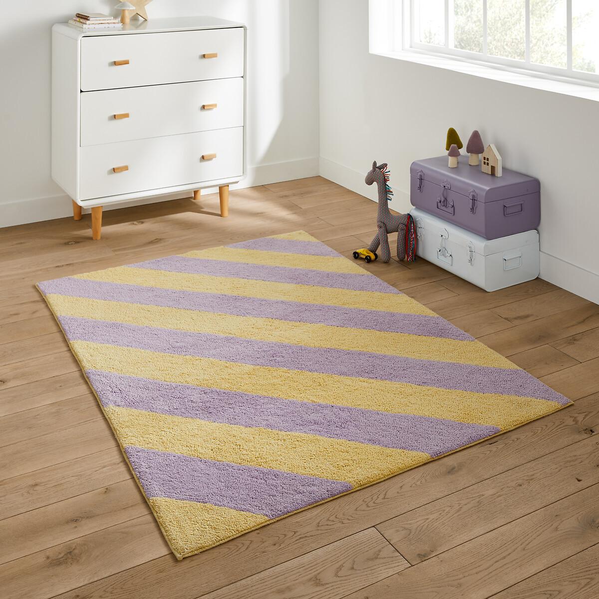 Want to bring a cheerful note and a touch of style to your child's bedroom? The Izalio rug in recycled cotton shows off its vintage colours and pop-art stripes. Designed by La Redoute Interiors. Product Details • 100% cotton • Recycled cotton • 1650g/m² • Artisanal craftsmanship. Quality Info • Cotton is soft to the touch and fluffy. This cotton rug is a good heat and sound insulator. Dimensions • Width 120 x Length 170cm • Thickness: 1.2cmDelivery:. Available for home delivery. • Recycled cotton. Using recycled cotton is all about conserving resources and reducing waste. • OEKO-TEX® Standard 100. Standard 100 certification by OEKO-TEX® tests textile products for harmful substances via an independent, international label.