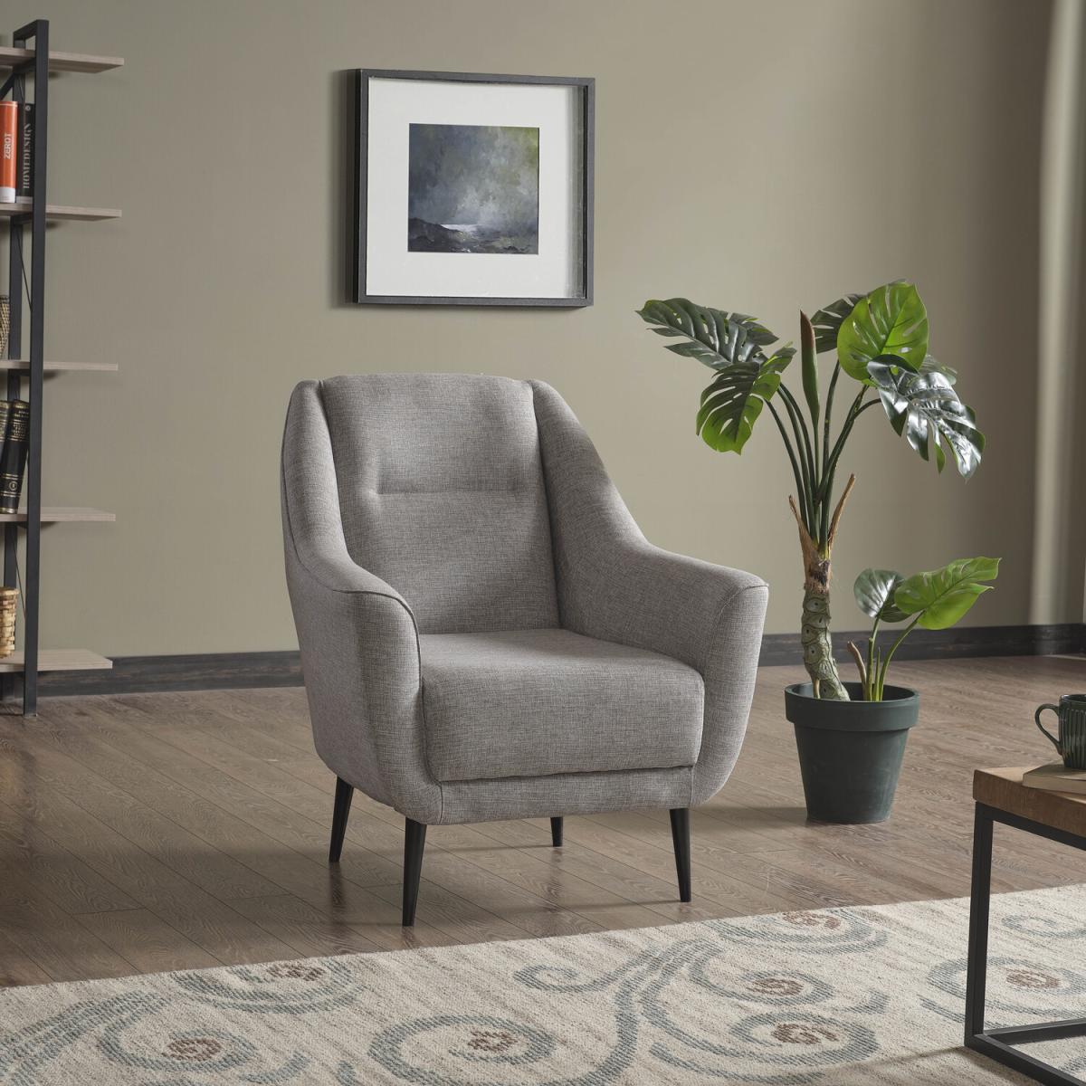 This modern armchair is an elegant piece of accent furniture for the home that can also create a cosy spot to enjoy a good book in. It stands on wooden legs and has a charming design. The integral chair structure allows for a simple setup and enhanced sturdiness. Whether used in the living room, bedroom, home office, or guest room of your house or apartment, it will instantly become a focal point and elicit lots of compliments from guests. Style it with your favourite throw pillow and fluffy blanket, and this accent chair is your new go-to place to relax and unwind.