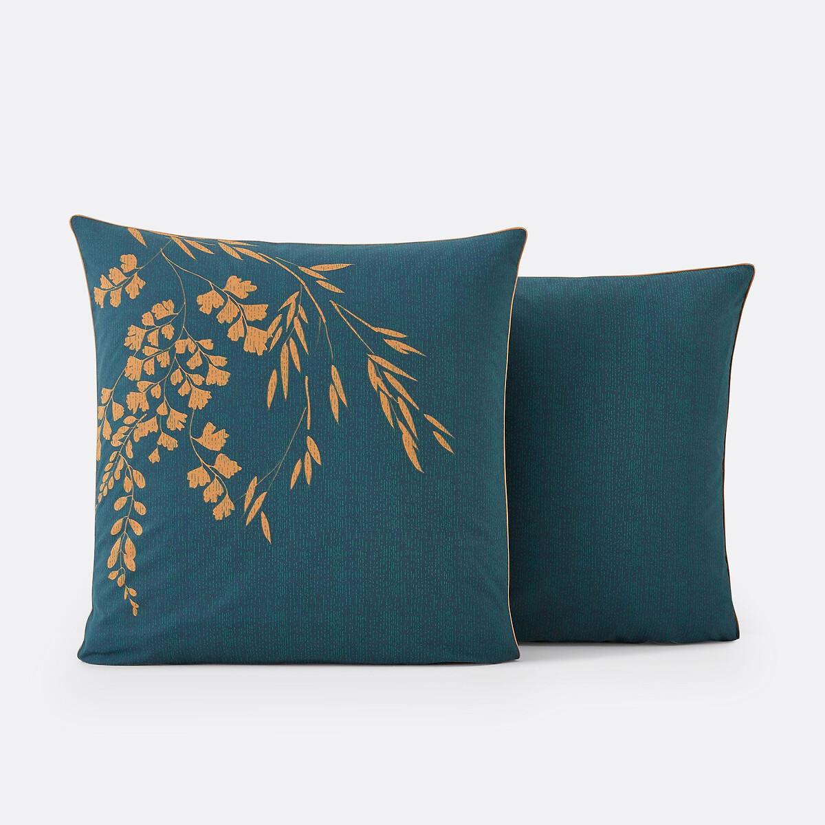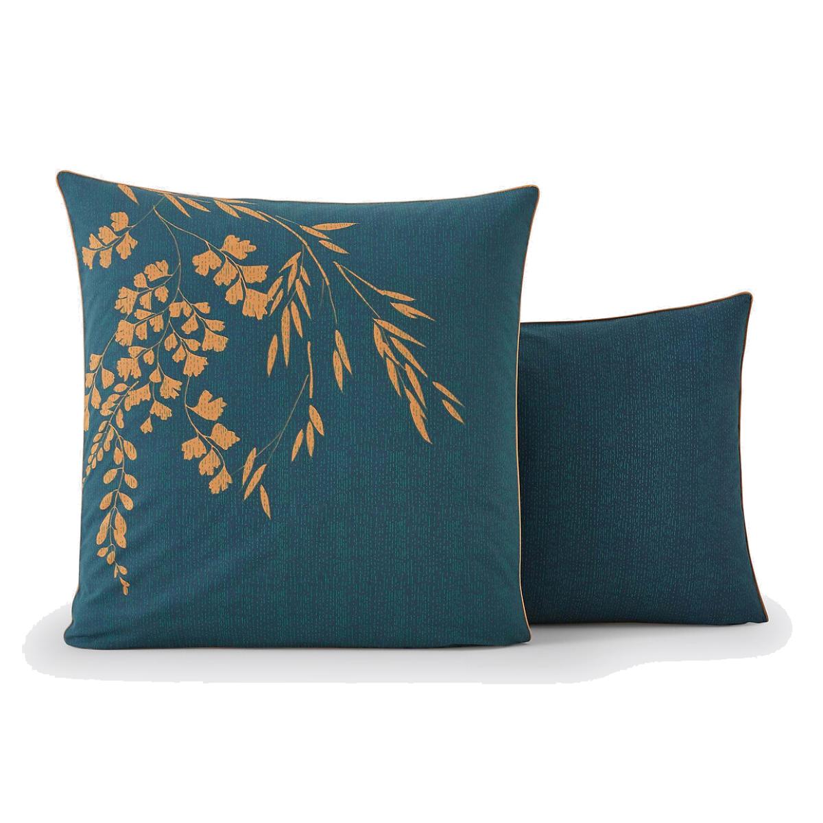 The Izumi percale pillowcase. Bringing a touch of the Orient to your bedroom, this Izumi pillowcase with its mesmerising foliage prints will take you on a magical journey. The cotton percale offers a pleasant feeling of freshness and lightness. Its tight weave makes it particularly soft for premium comfort. A matte and smooth material that will soften over time. Product Details • 100% cotton • Percale • 200 thread count: The higher the thread count, the higher the quality of the weave • Front: foliage print with halftown background, back: plain halftone. Care Advice • Machine washable at 40°CSizes • 50 x 70cm: Rectangle cover • 63 x 63cm: Square cover • OEKO-TEX® Standard 100. Standard 100 certification by OEKO-TEX® tests textile products for harmful substances via an independent, international label.